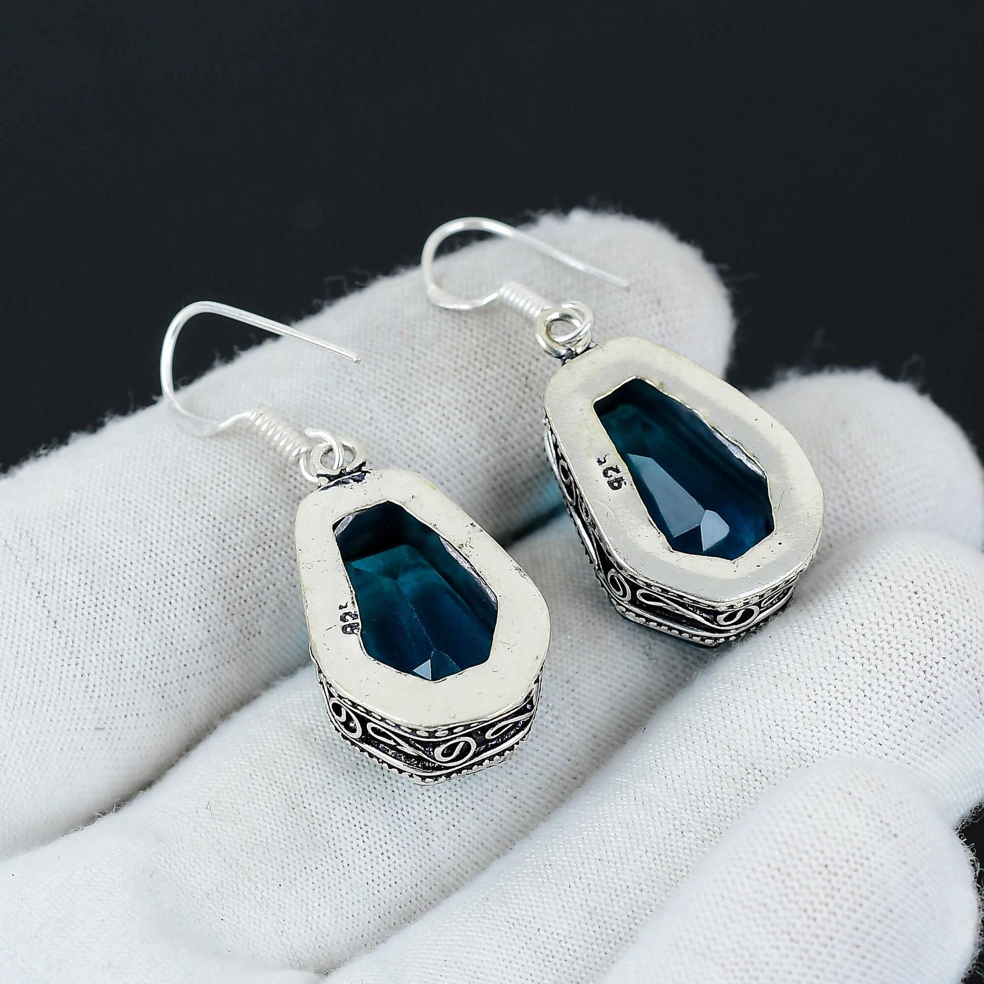 Elevate your elegance with our exquisite Blue Sapphire Drop Earrings. Crafted with precision, these earrings feature a striking faceted sapphire stone, set in intricate antique silver detailing that exudes timeless sophistication.