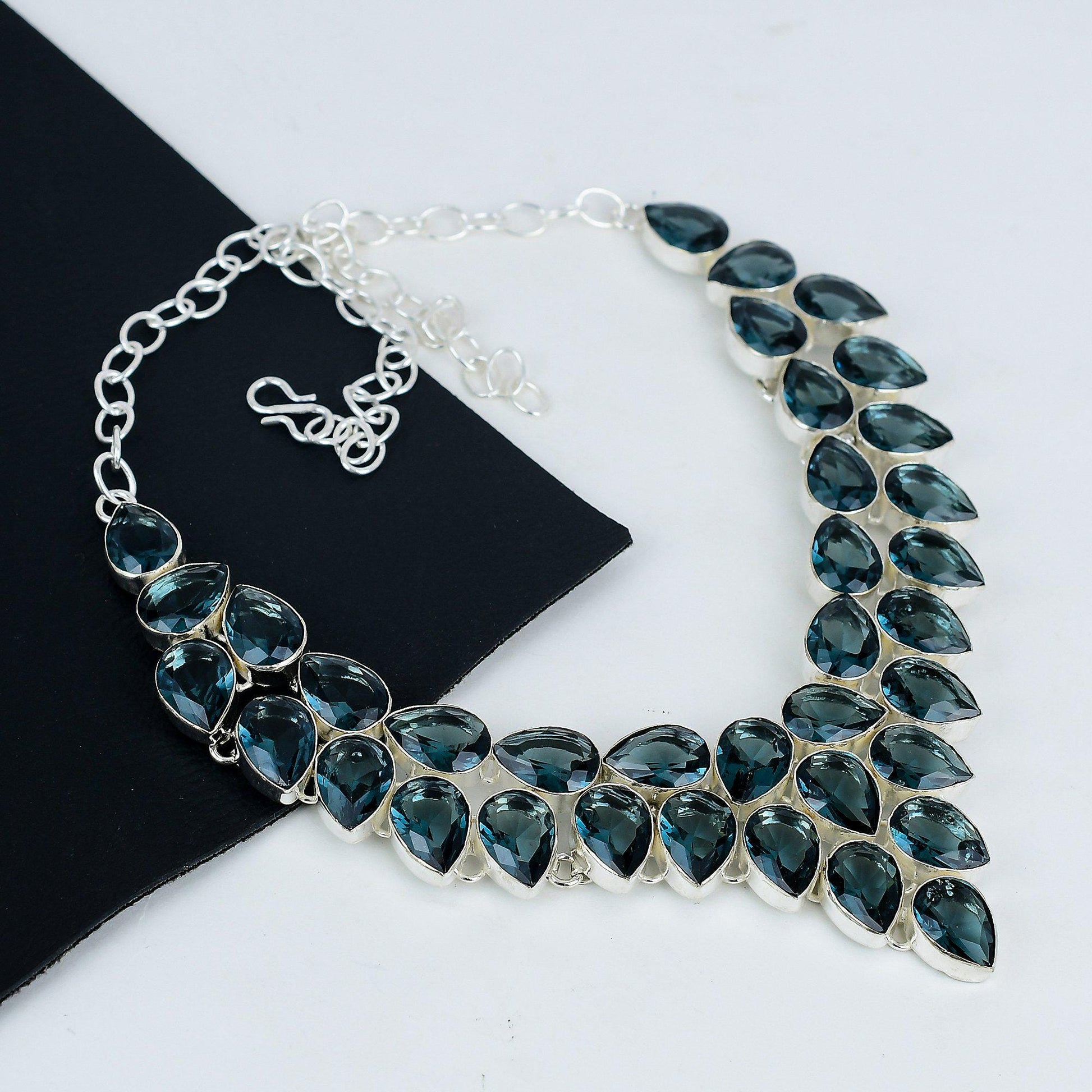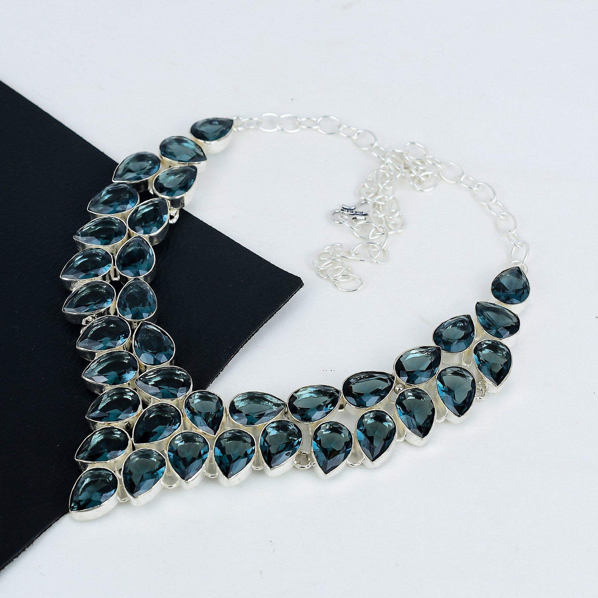 Discover the elegance and charm of our exquisite necklace, featuring stunning blue teardrop gemstones meticulously set in a sleek silver chain.