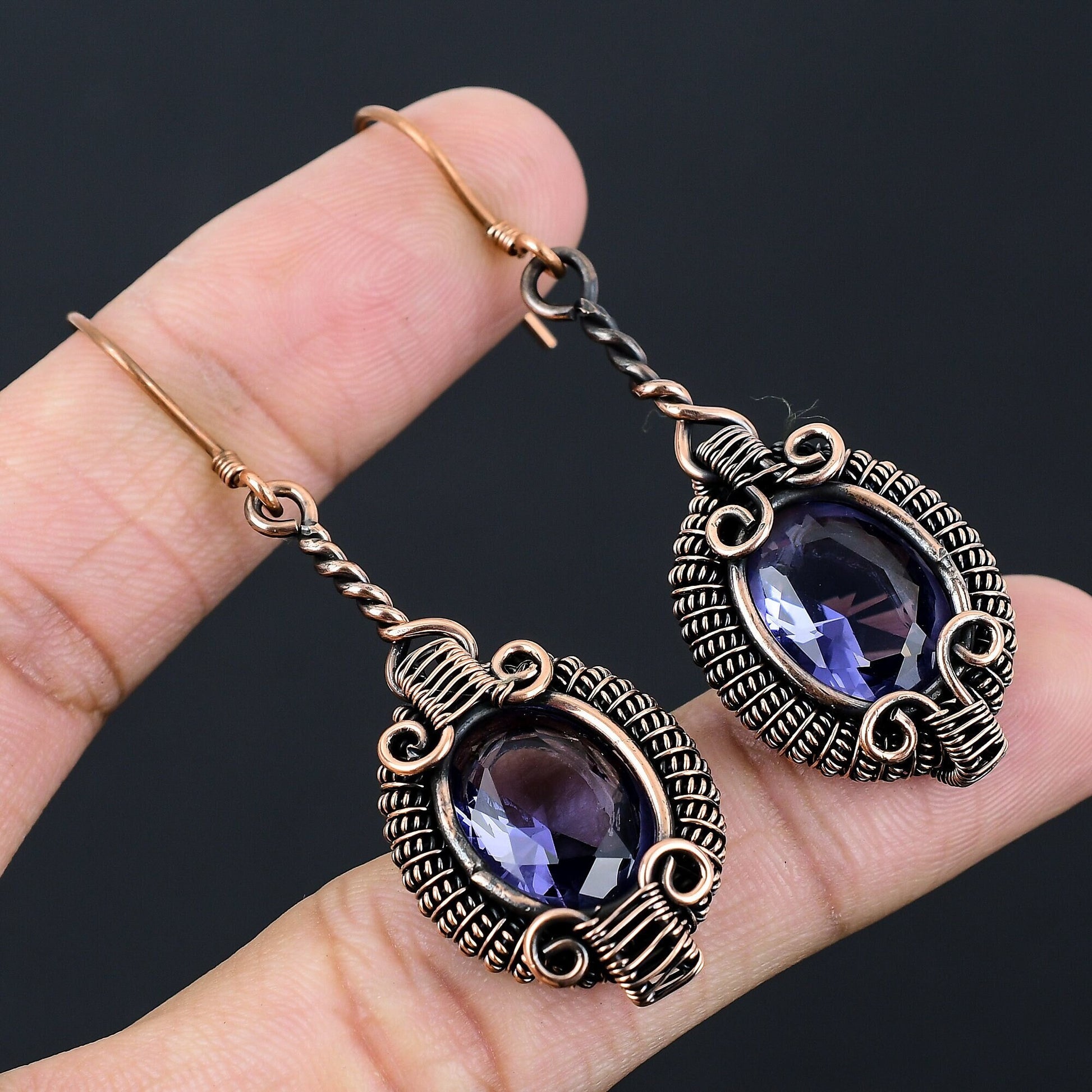 Discover the elegance and charm of our handcrafted Vintage Copper Wire Earrings. These exquisite pieces feature intricate copper wire artistry, embracing a deep, royal purple gemstone at the center.