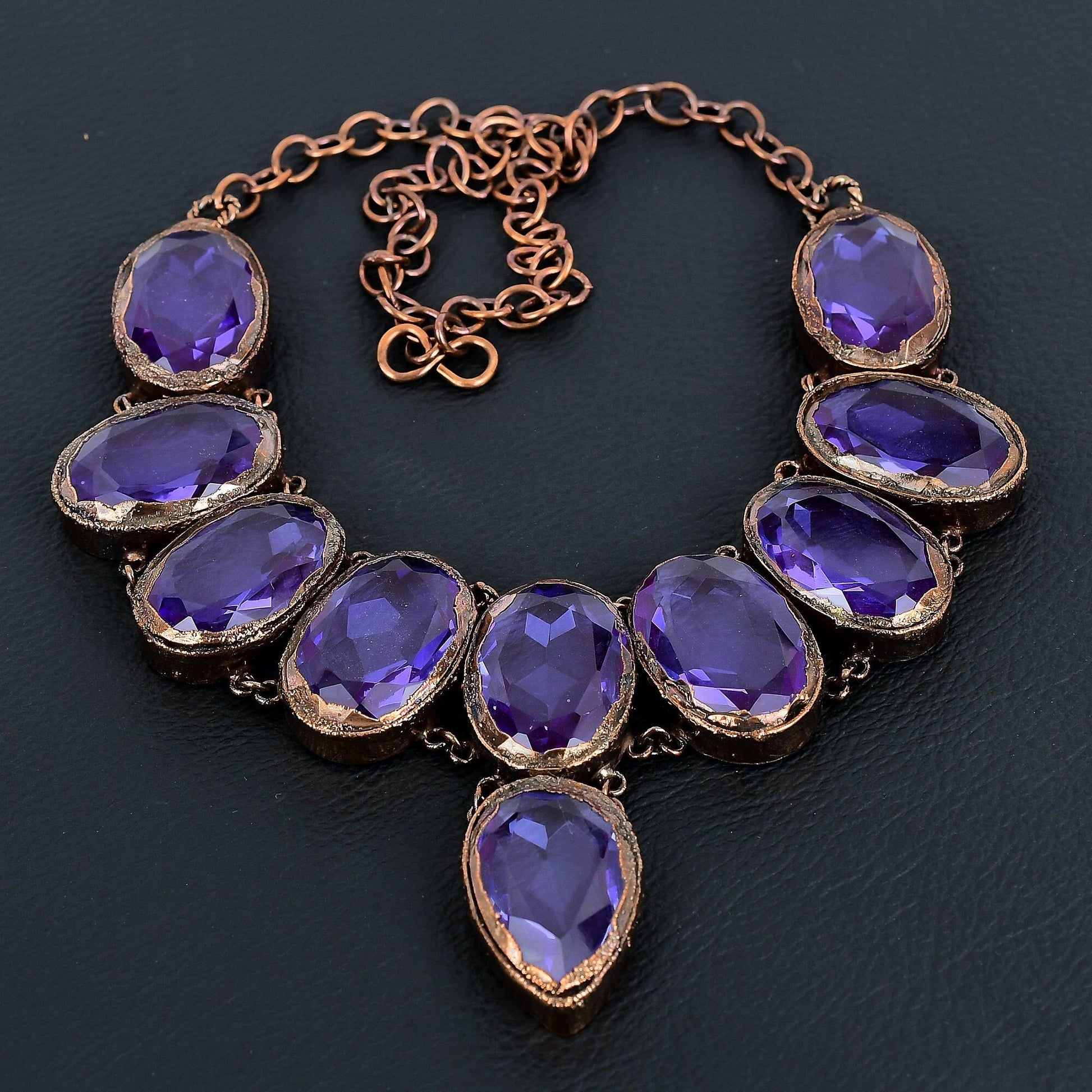 Discover elegance with our stunning statement necklace, showcasing captivating amethyst gemstones.