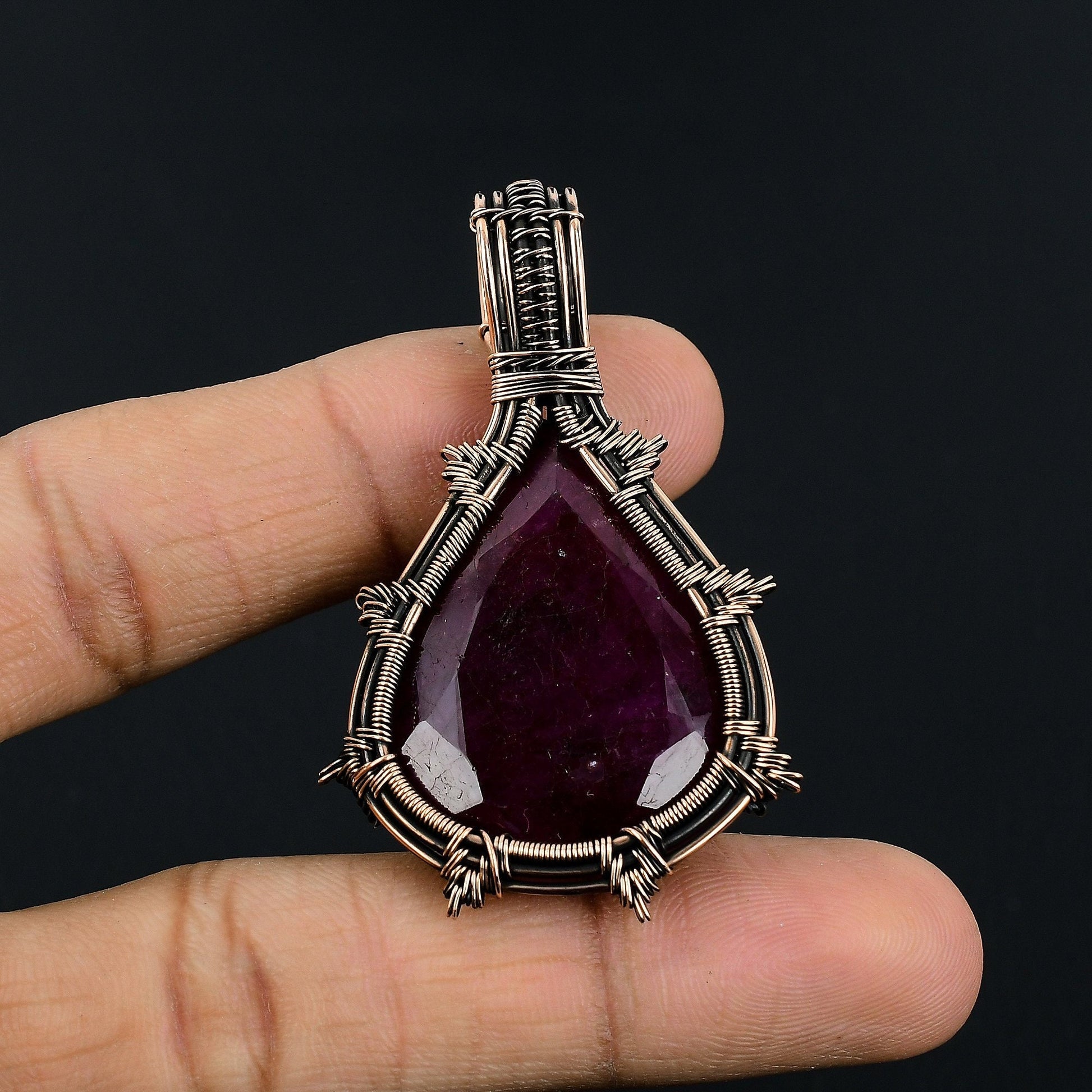 Enhance your elegance with this exquisite handcrafted pendant, featuring a stunning deep red gemstone.