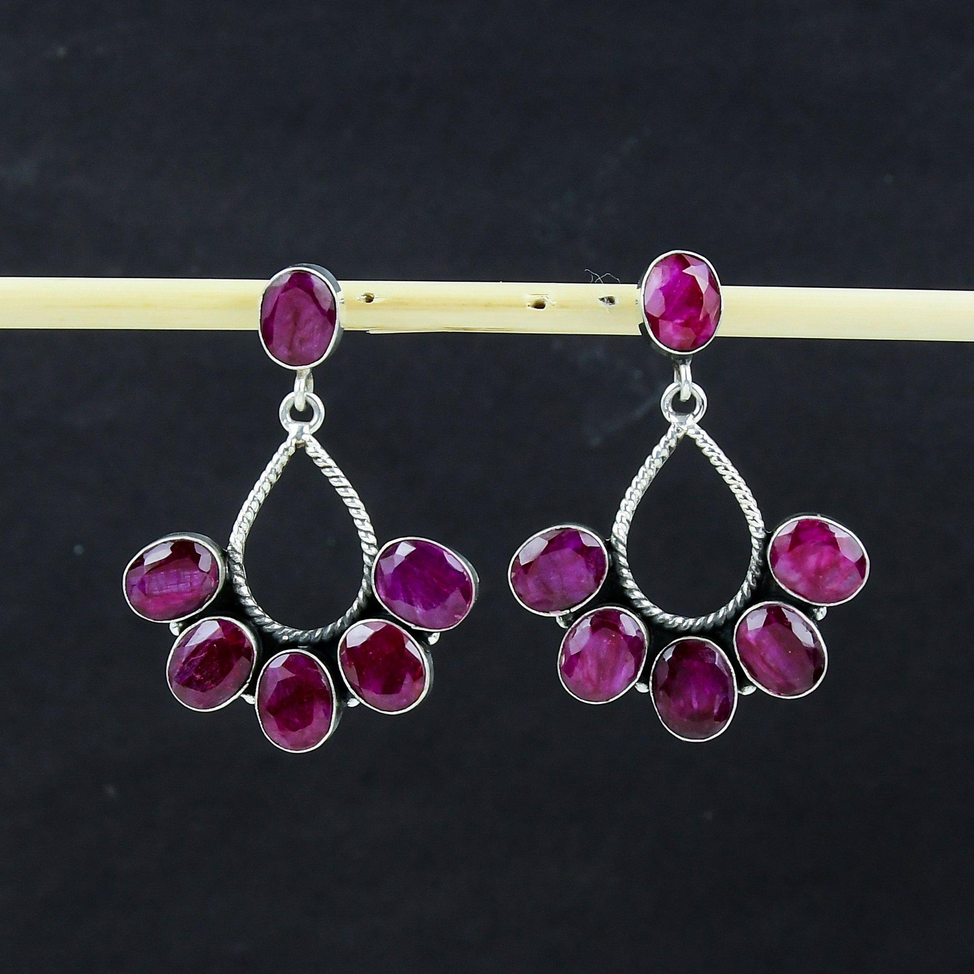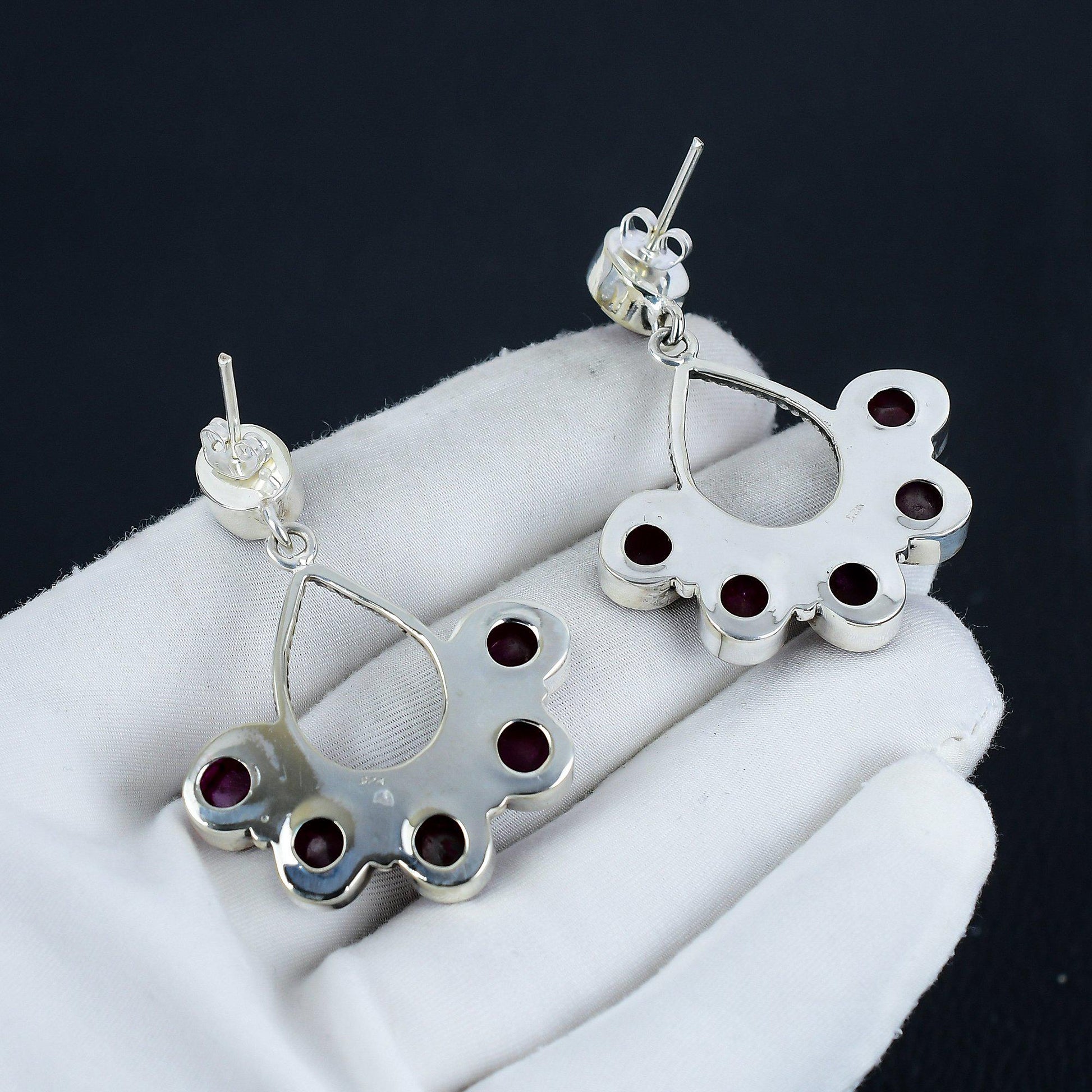 Crafted with exquisite silver metalwork, each earring boasts seven captivating, deep red stones that radiate a timeless allure.