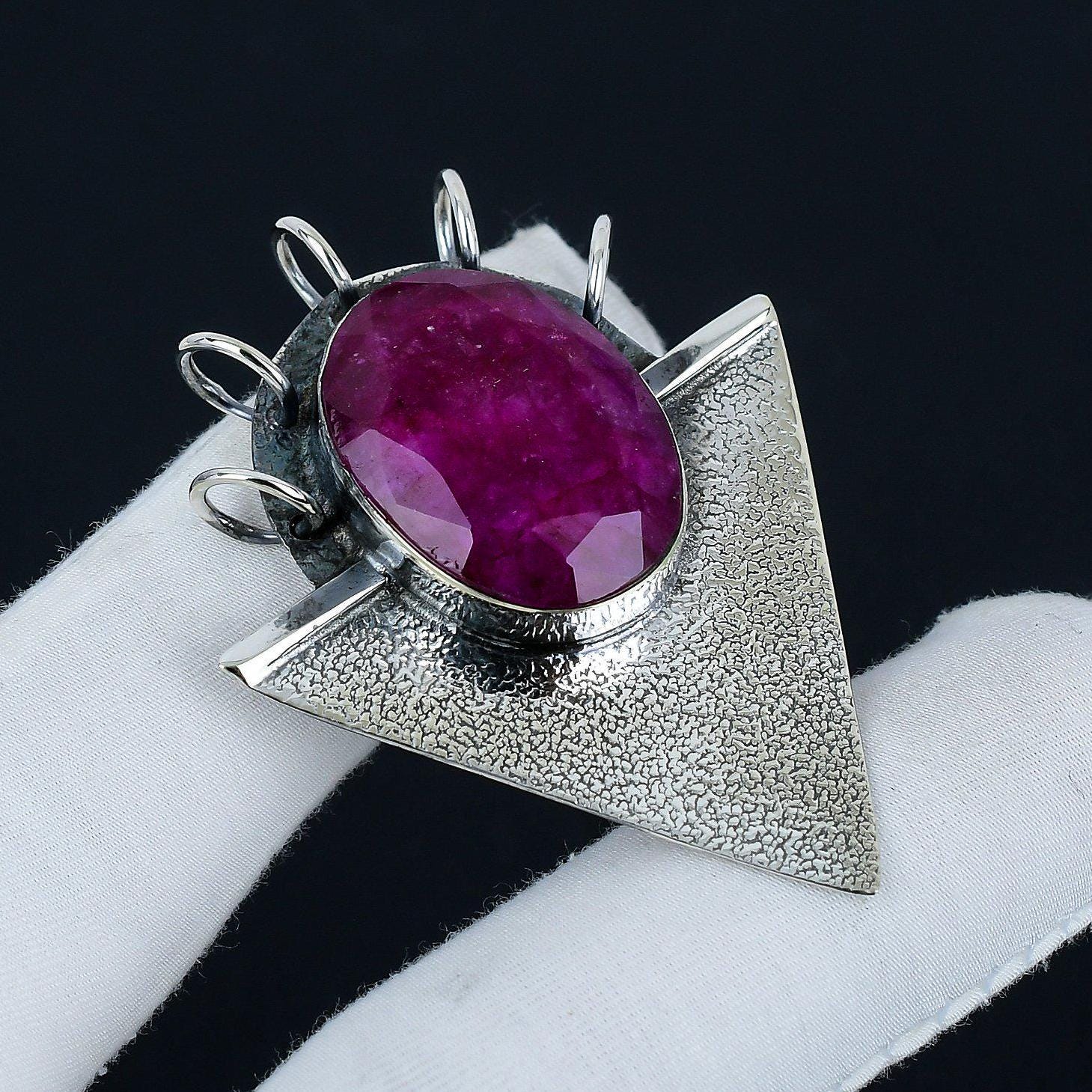 Embrace elegance and make a bold statement with this exquisite triangle-shaped pendant featuring a captivating purple gemstone. Crafted with meticulous attention to detail, the textured silver setting beautifully complements the vibrant hue of the stone, creating a striking piece of art.