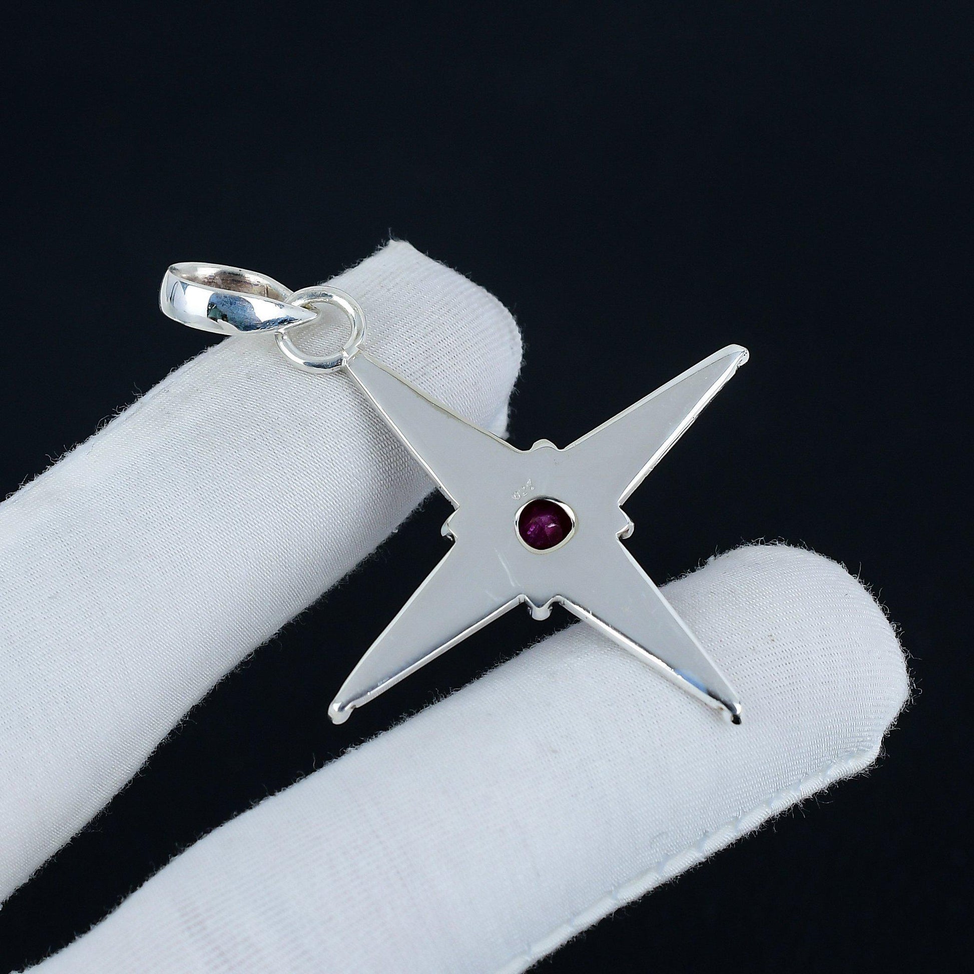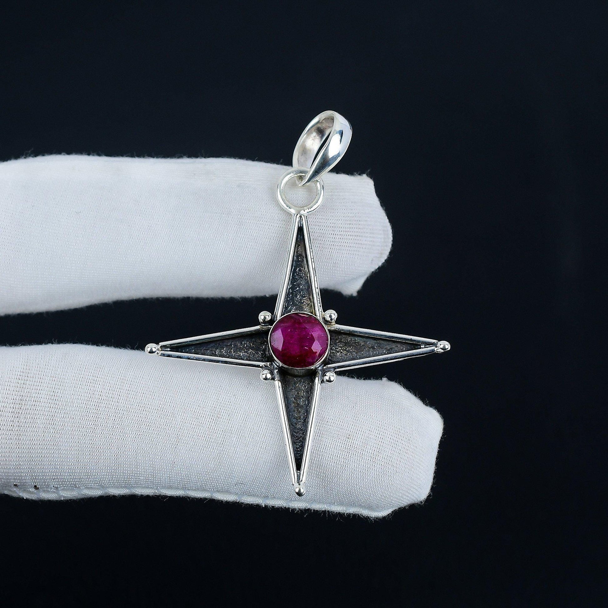 Introducing our exquisite Star Pendant, a symbol of elegance and mystery. Crafted with premium materials, this pendant features a striking central gemstone in vivid magenta, seamlessly set in a brilliant star design.