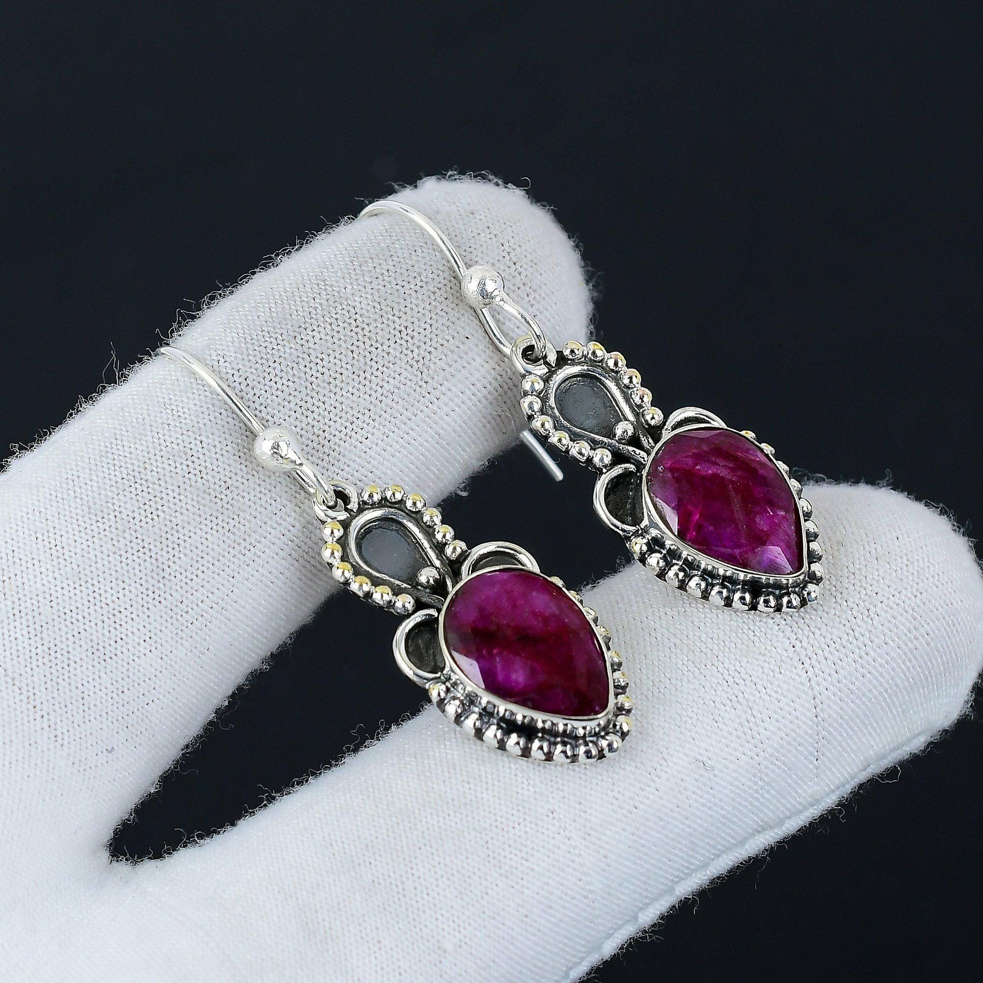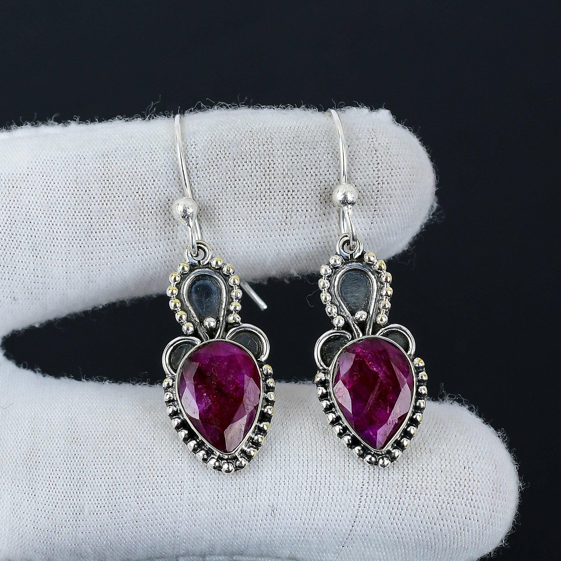 Embrace timeless elegance with these exquisite teardrop earrings. Set in gleaming silver, each earring features a vibrant deep pink stone, perfectly accentuated by intricate detailing around the edges.