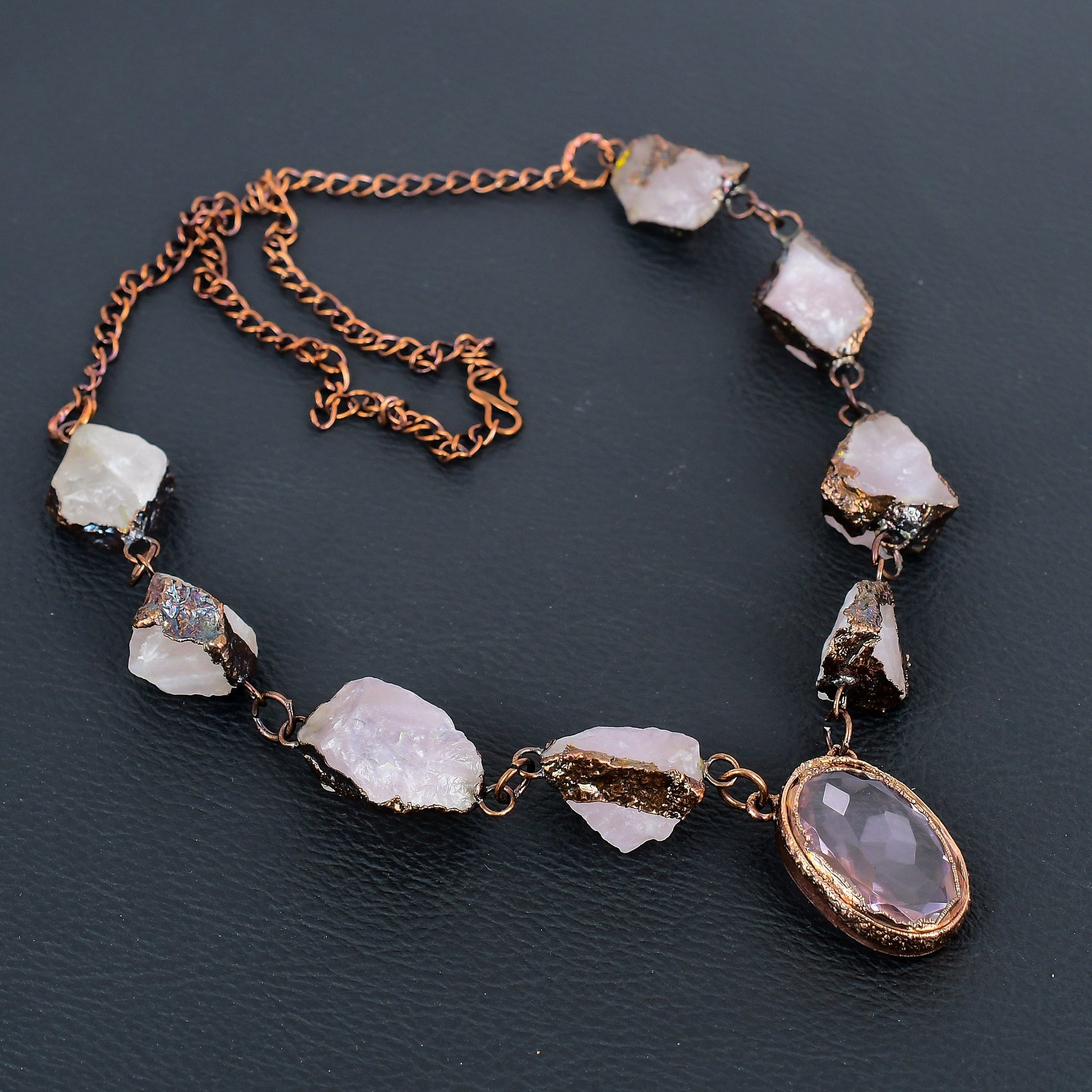 - Elegant copper chain: The warm hue of the copper perfectly complements the soft pink tones of the quartz.