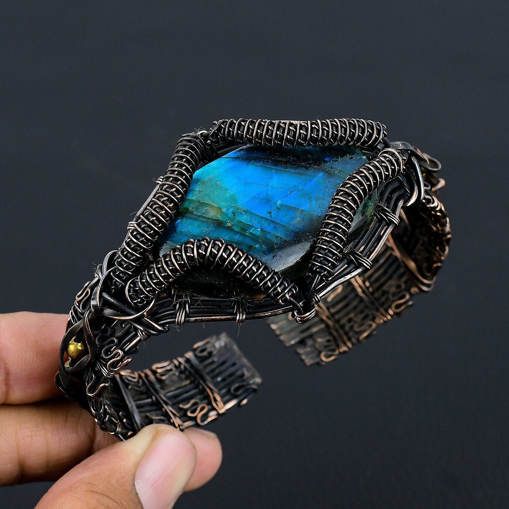 The bracelet is intricately wire-wrapped, showcasing exceptional craftsmanship and attention to detail. Its unique design ensures that it stands out, adding a touch of elegance and sophistication to any outfit.