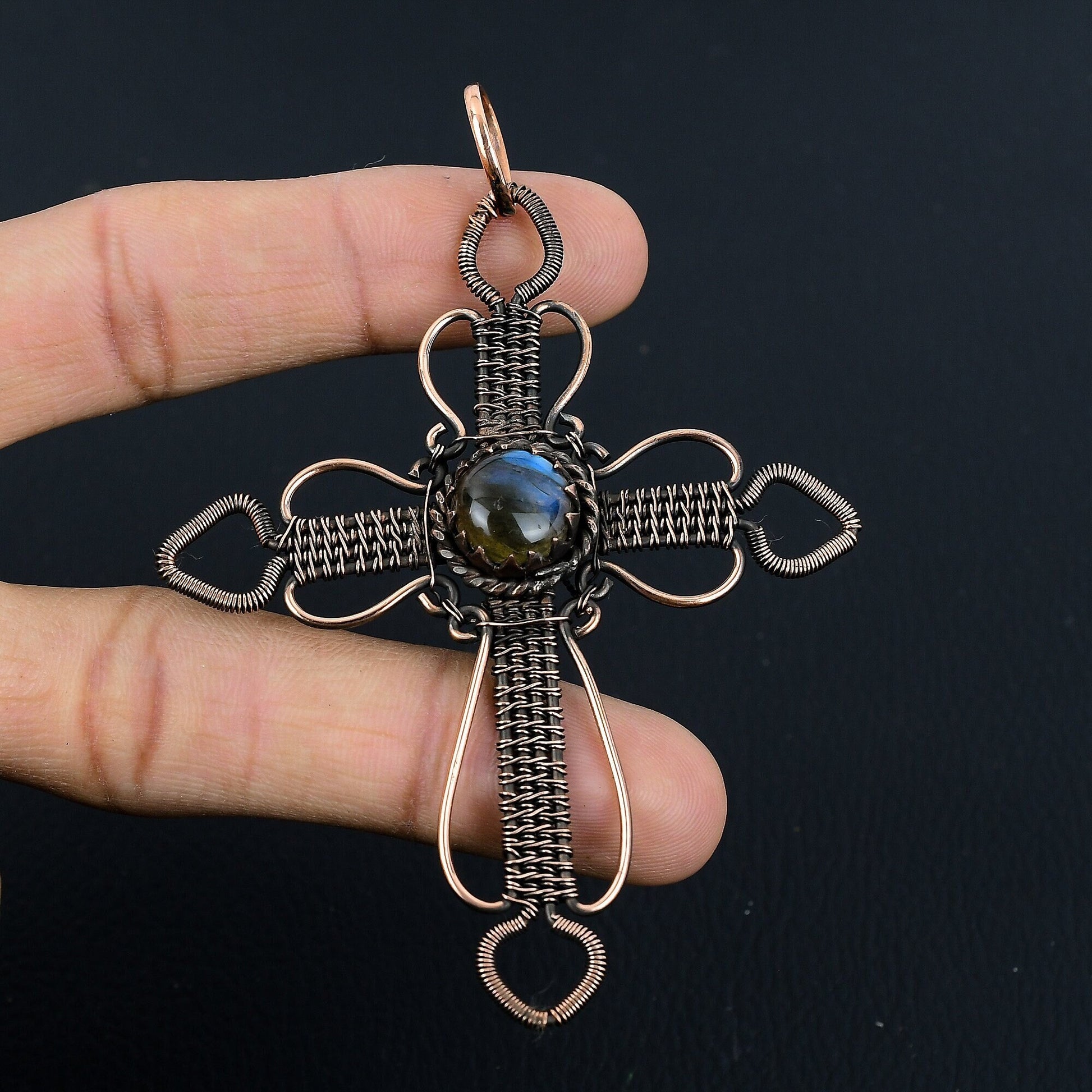 Elevate your accessory collection with this stunning handcrafted wire-wrapped cross pendant.