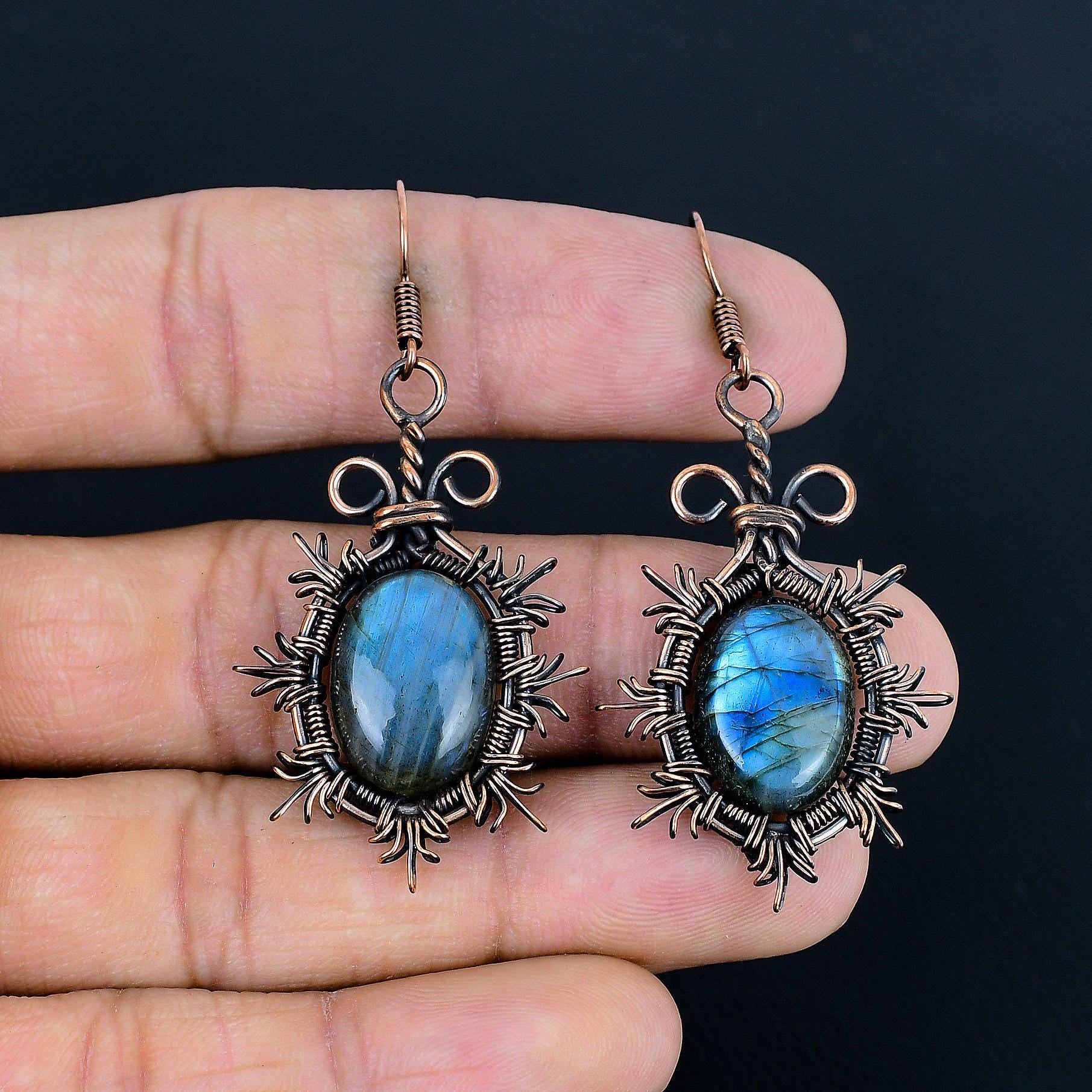 Enhance your elegance with our exquisite Labradorite Wire-Wrapped Earrings.