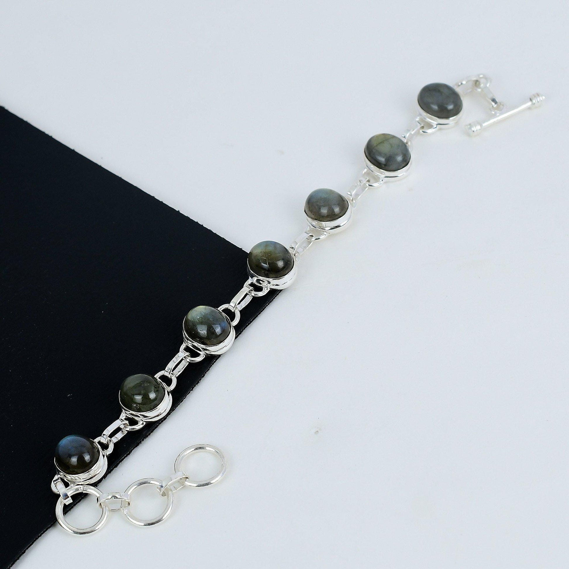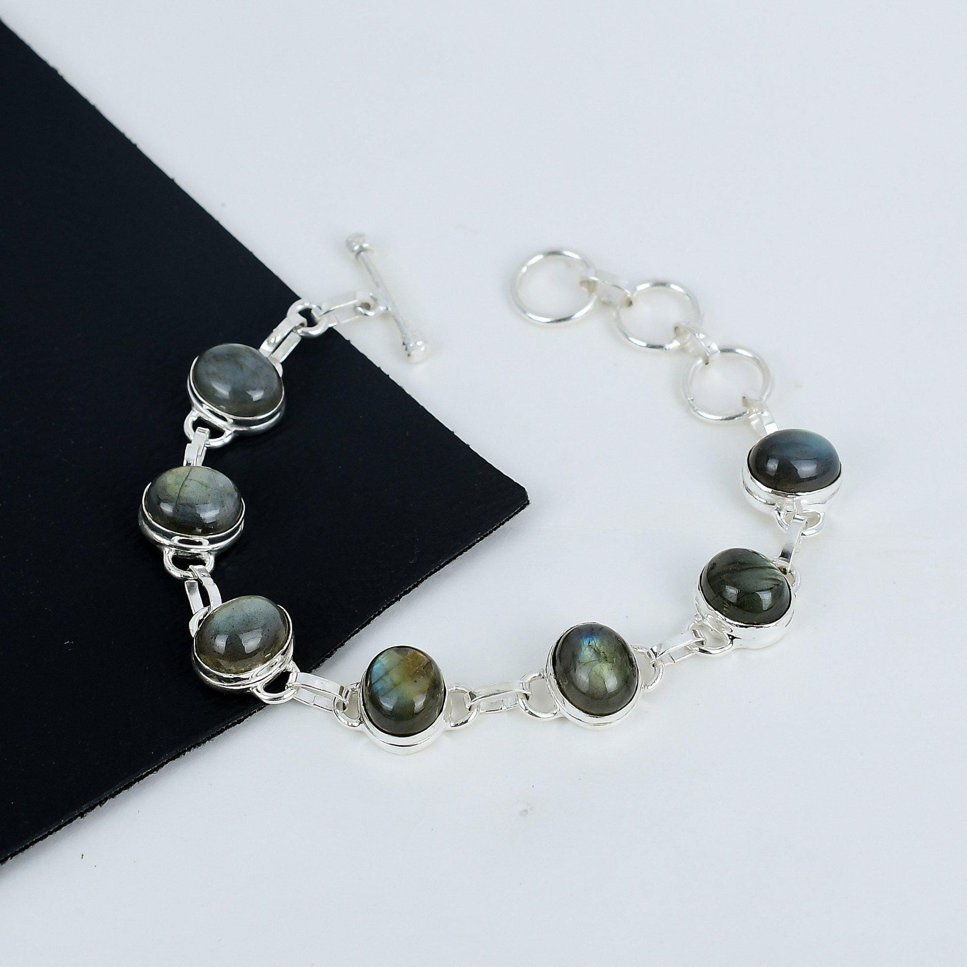 The labradorite stones in this bracelet are carefully selected to ensure the highest quality and most captivating appearance. Each stone reveals unique flashes of blue, green, and gold that catch the light beautifully.