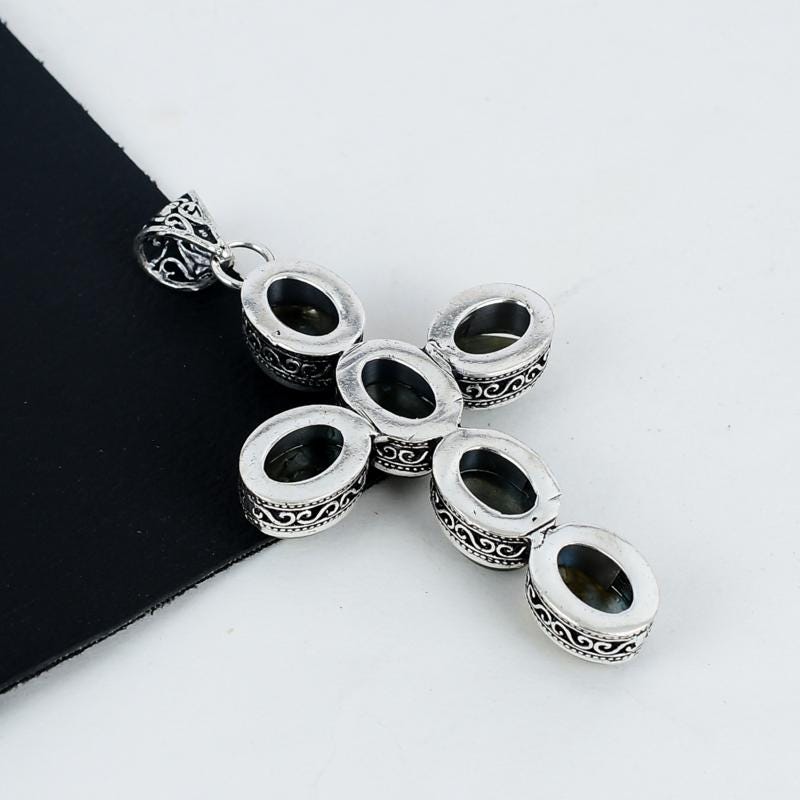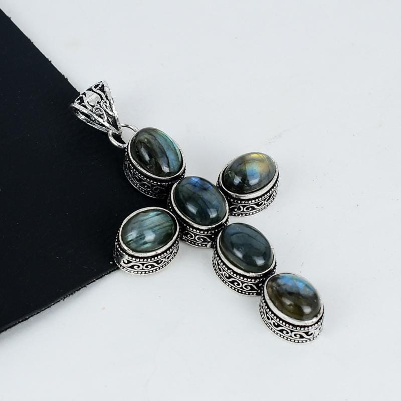 Elevate your style with this exquisite handcrafted pendant, featuring stunning labradorite stones.
