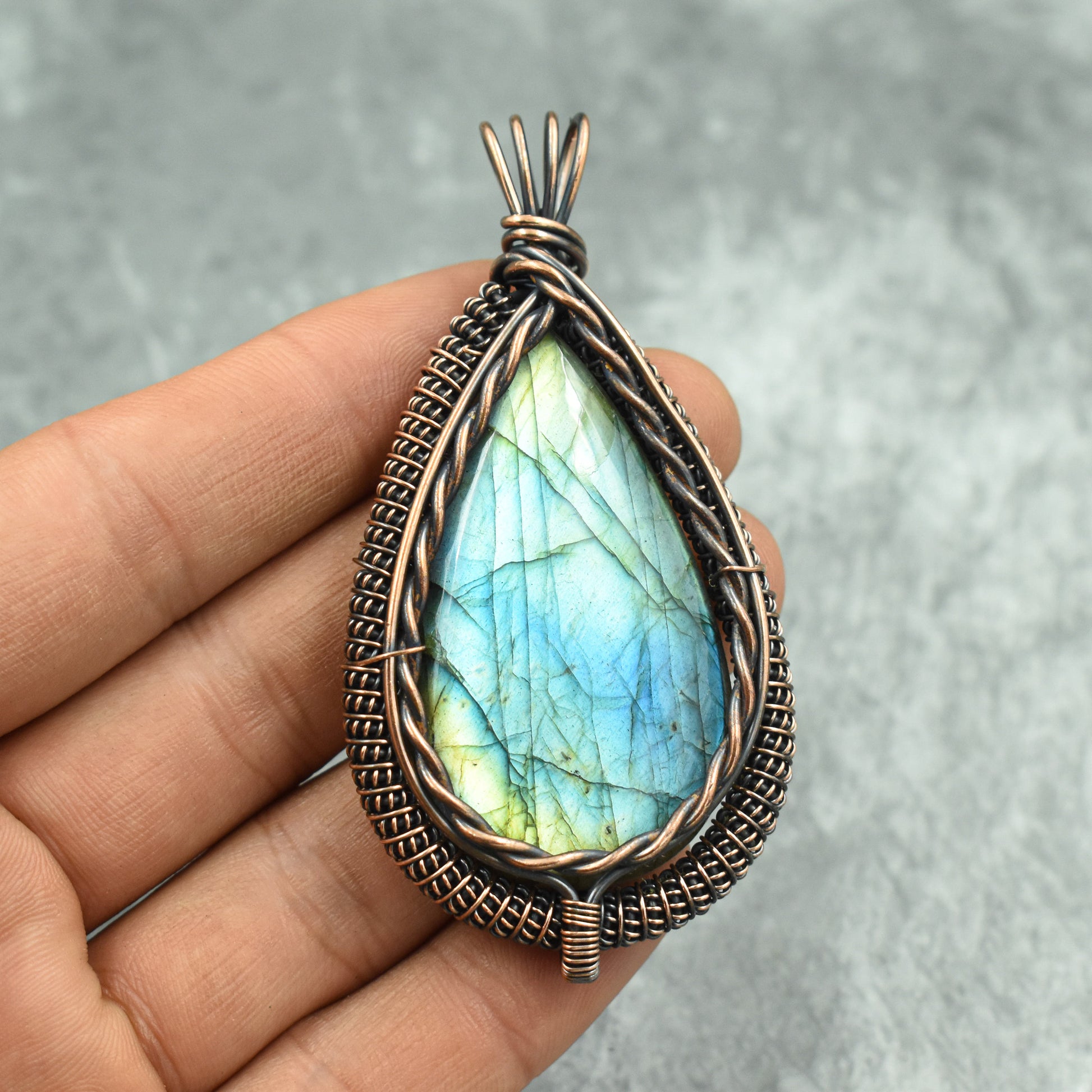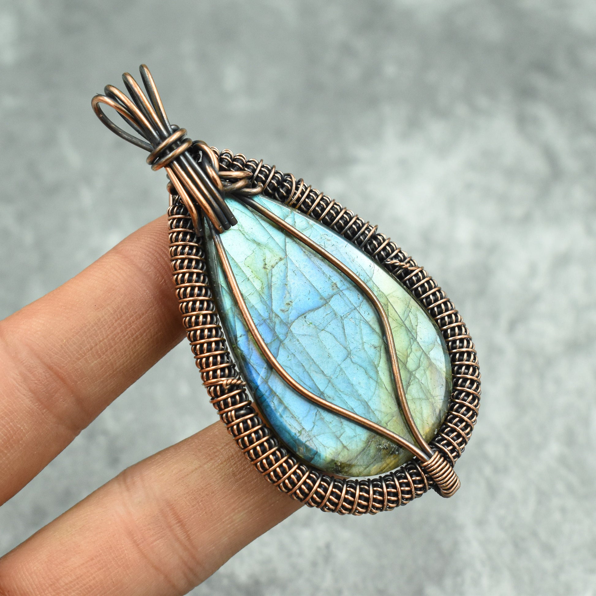 Discover the enchanting allure of our handcrafted wire-wrapped labradorite pendant.