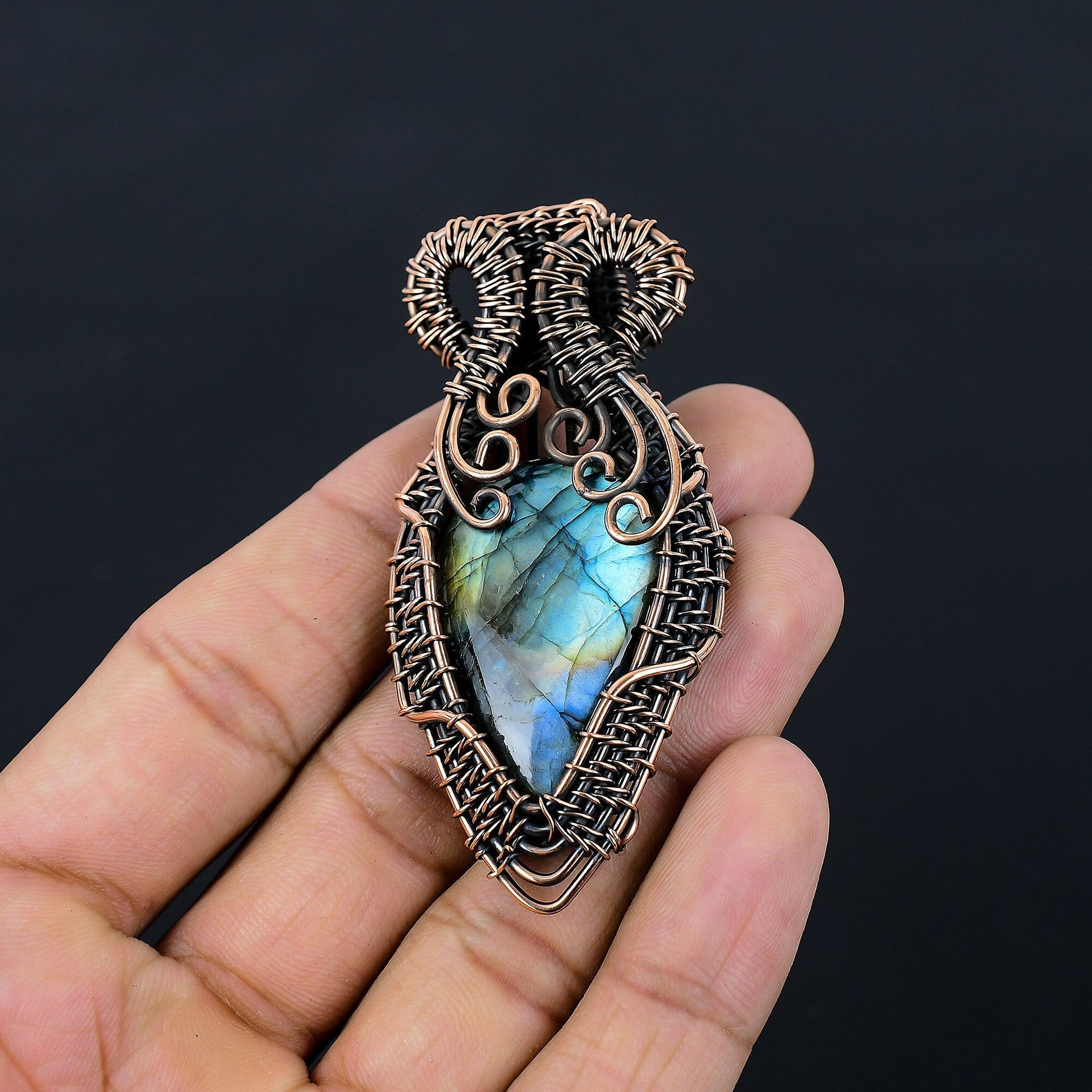 Discover the enchanting allure of our exquisite handcrafted pendant, featuring a mesmerizing labradorite gemstone.
