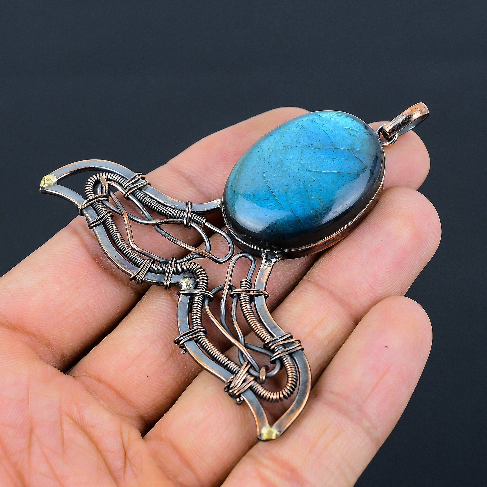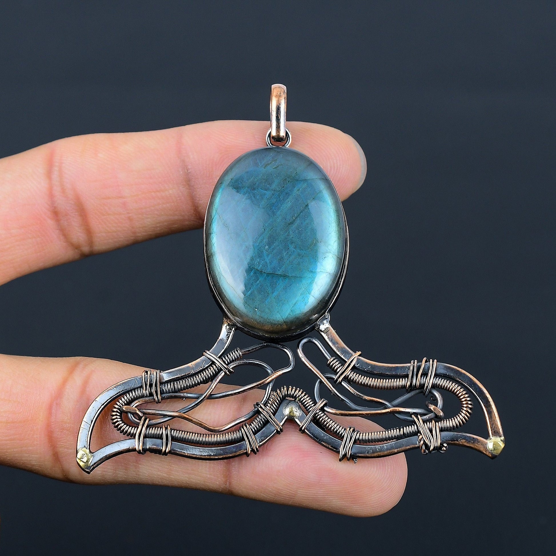 Experience the mystical allure of our handcrafted Labradorite pendant, a true masterpiece of artisan jewelry.