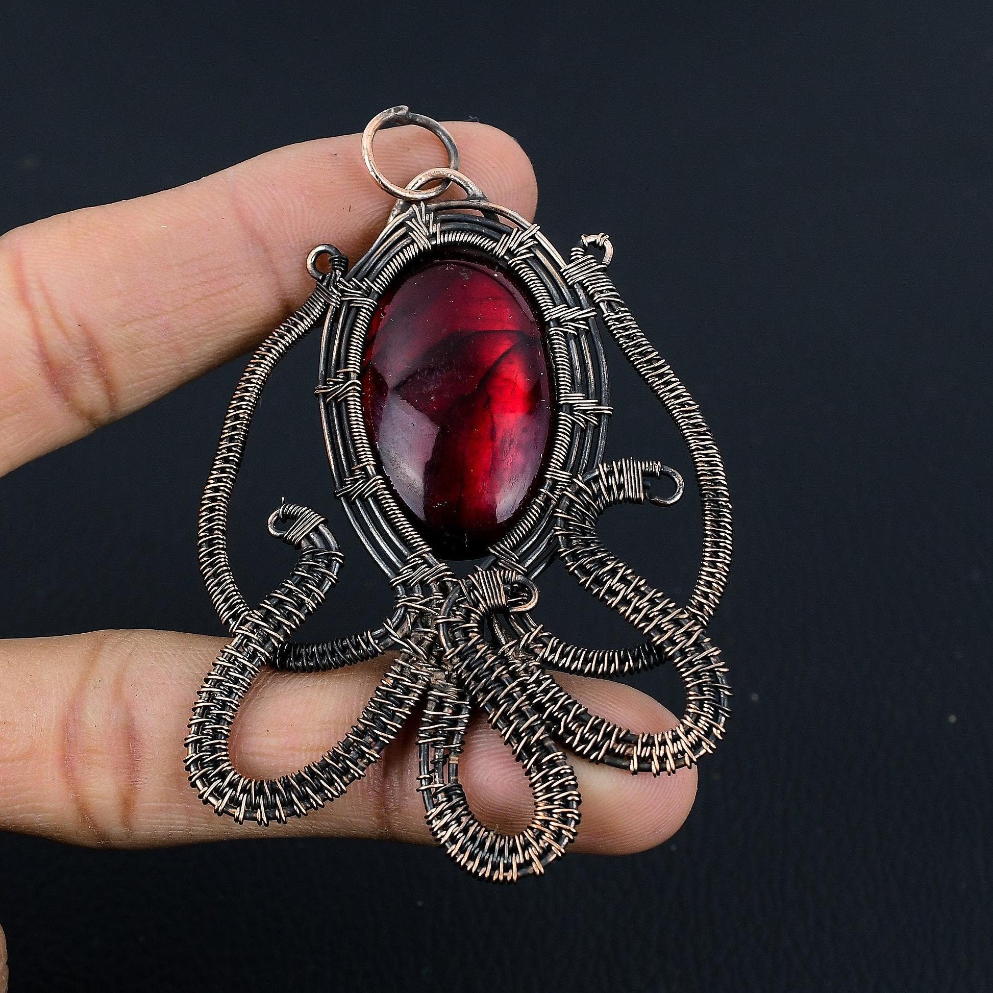 Introducing our exquisite handcrafted wire-wrapped pendant, featuring a captivating deep red gemstone at its heart. Skillfully crafted with intricate wire loops, this piece exudes elegance and uniqueness.