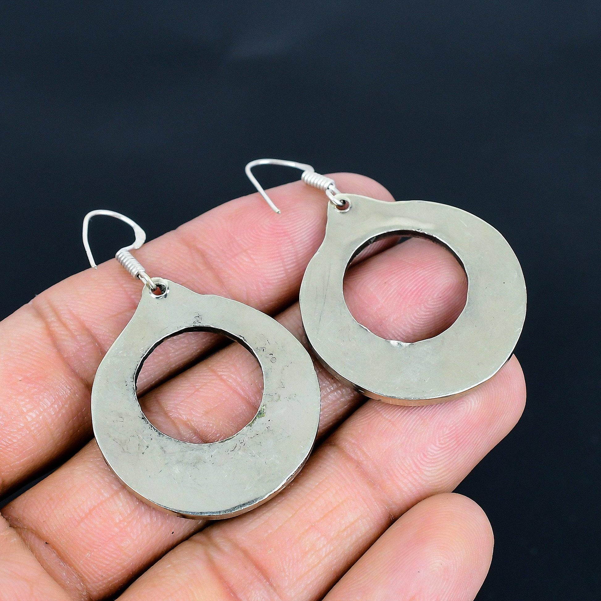 Discover the captivating elegance of our handcrafted circular earrings, featuring vibrant blue stones set in a polished silver frame.