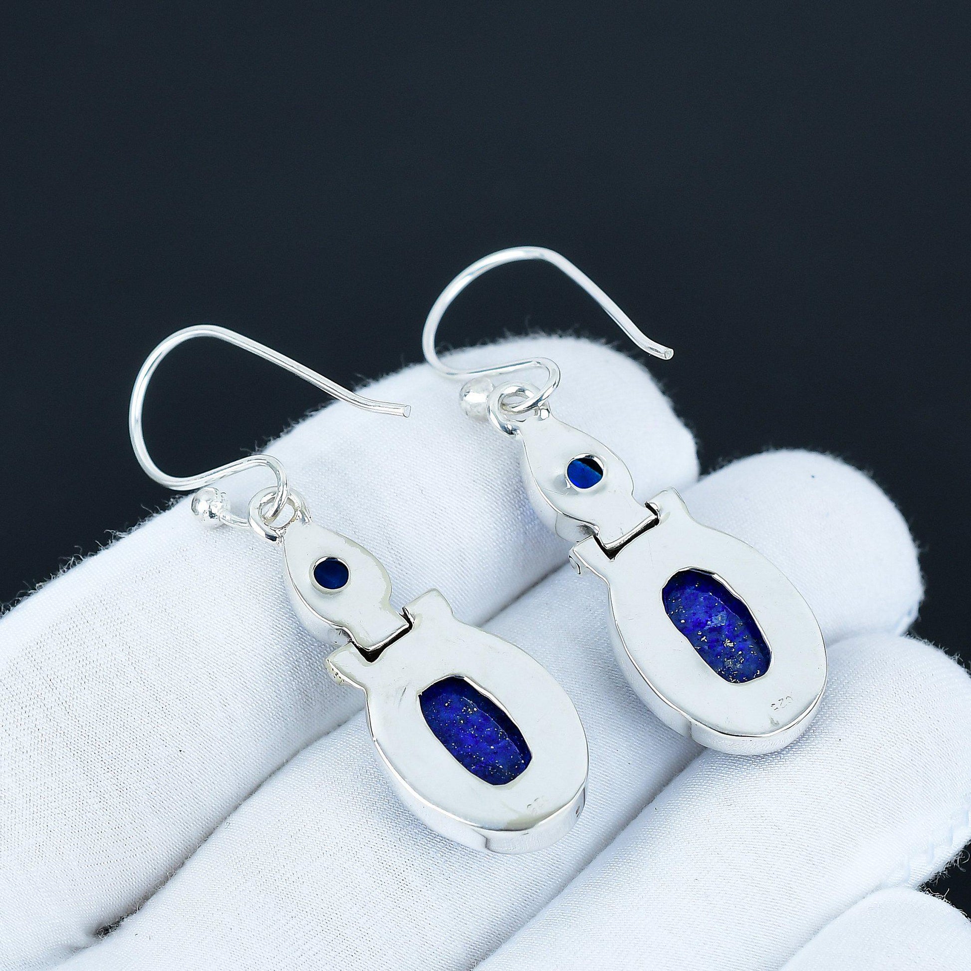 Elevate your style with these exquisite lapis lazuli and sapphire blue drop earrings.