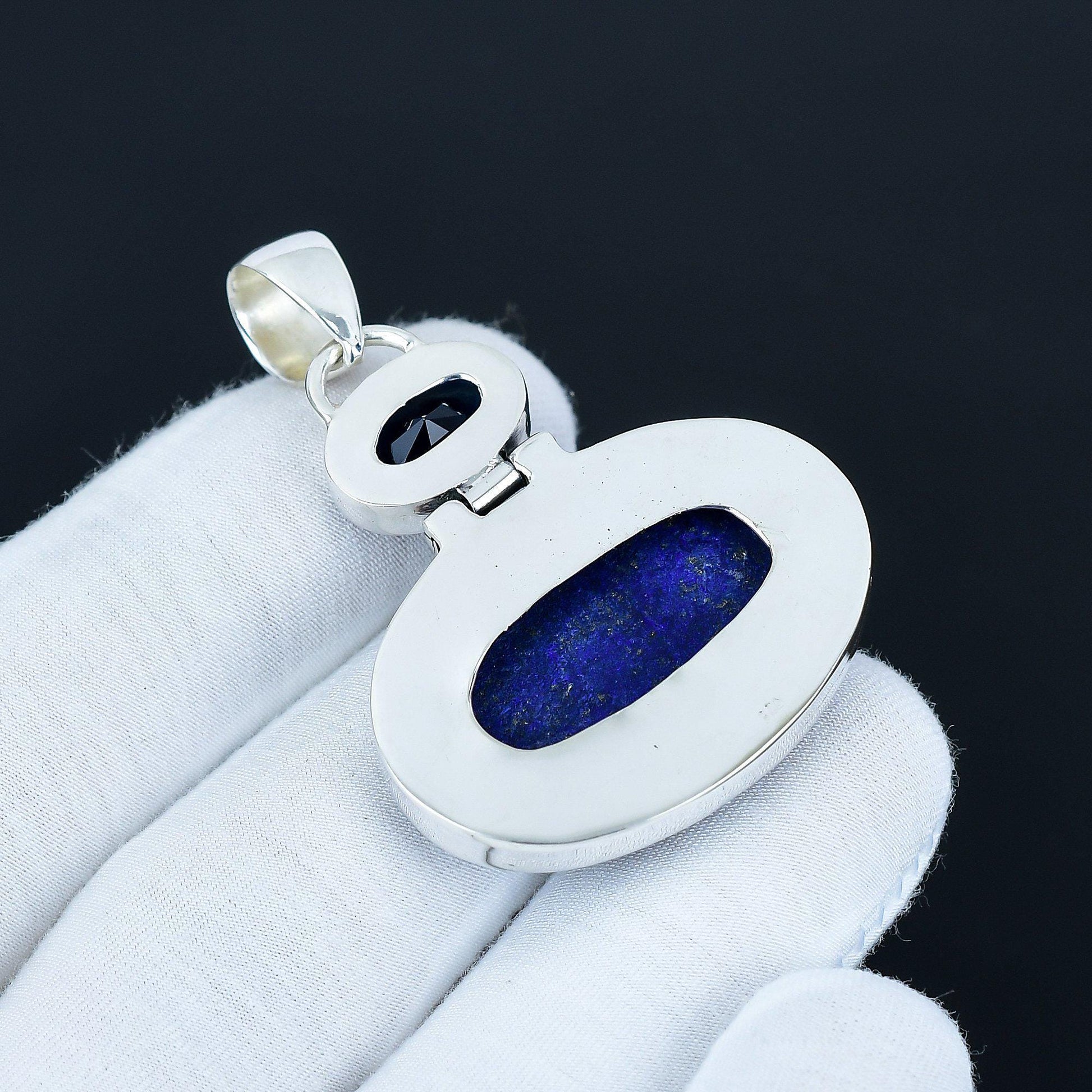 Discover the timeless beauty of our exquisite pendant, featuring a combination of deep blue lapis lazuli and a lustrous sapphire.