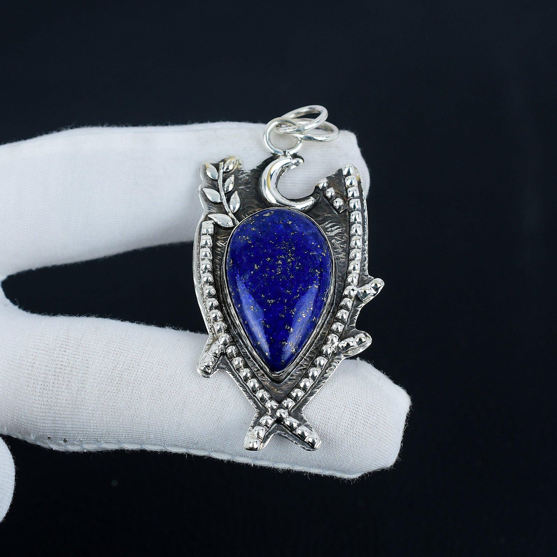 Discover timeless elegance with our handcrafted lapis lazuli pendant, set in a beautifully detailed silver frame.