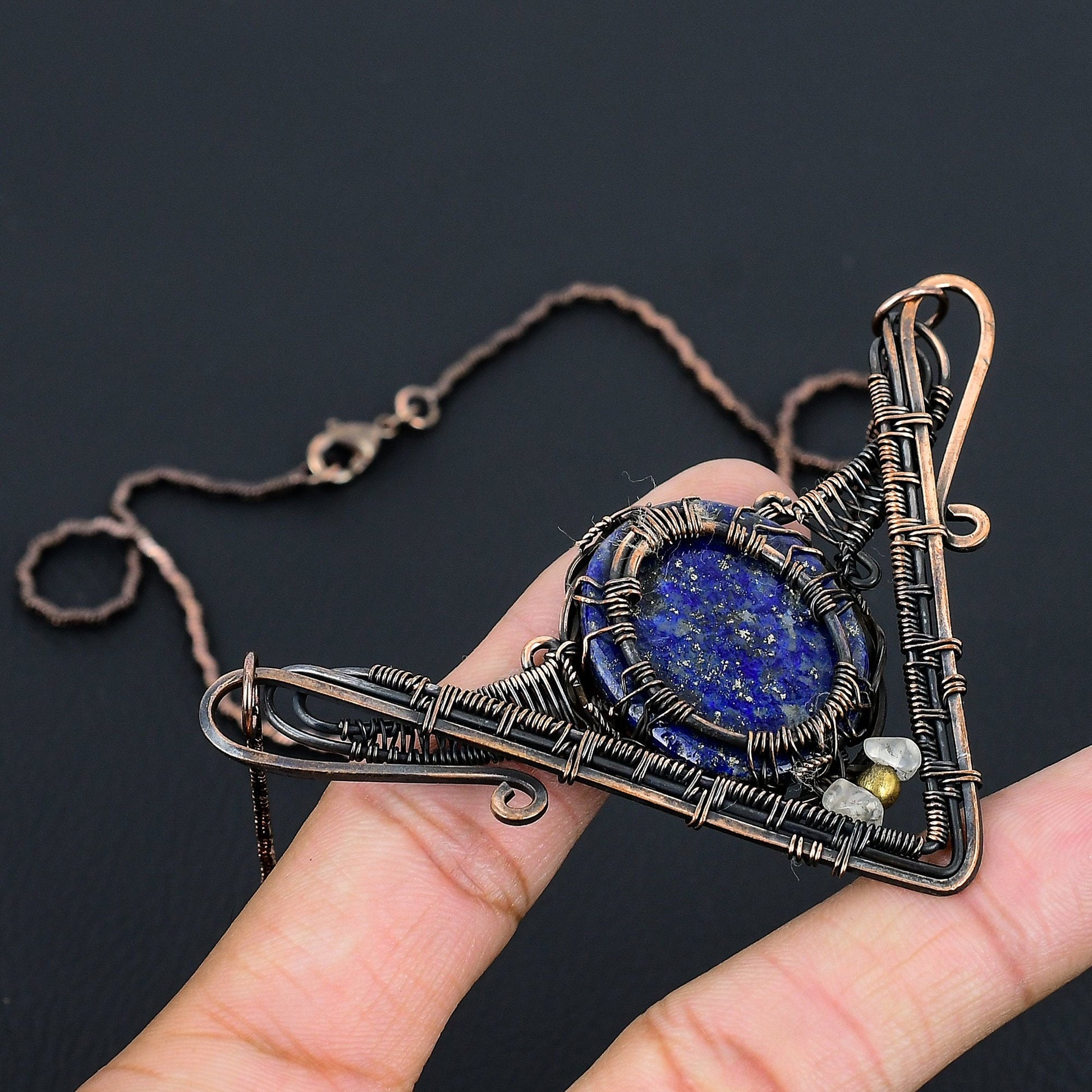 Embrace the mystical allure of our Tree of Life Pendant Necklace, a stunning piece of artisanal craftsmanship. This captivating necklace features a vibrant blue gemstone, intricately encased within a meticulously woven wire frame, forming the timeless symbol of the Tree of Life.