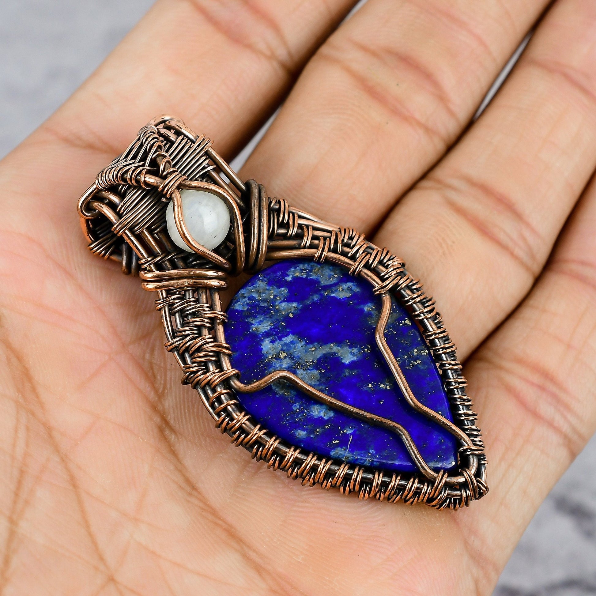 Cleverly wrapped in intricately woven copper wire, the pendant exudes an elegant and vintage charm.