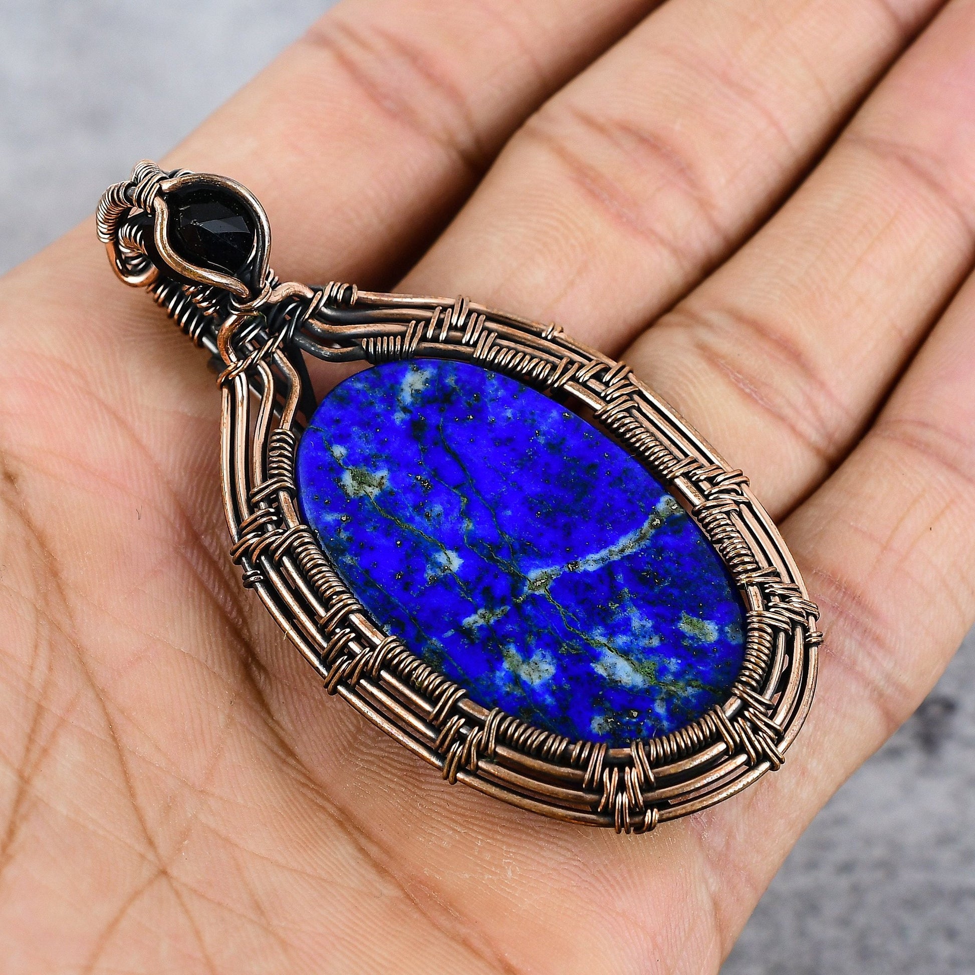 Elevate your style with this stunning handmade pendant, showcasing a vibrant blue gemstone intricately wrapped in elegant wirework.