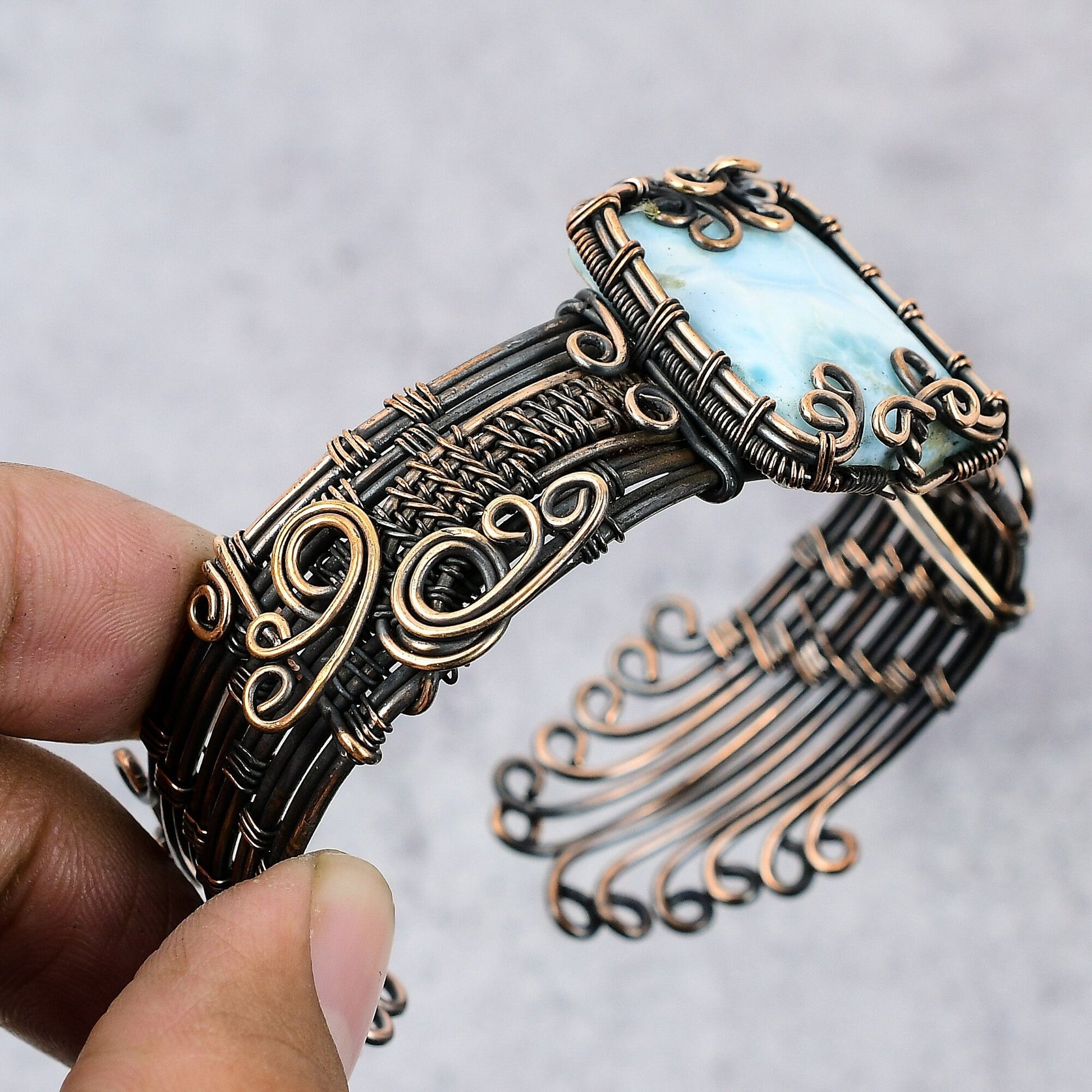 Featuring a stunning central aquamarine stone, this unique piece seamlessly combines intricate wirework artistry with the natural beauty of the gemstone.
