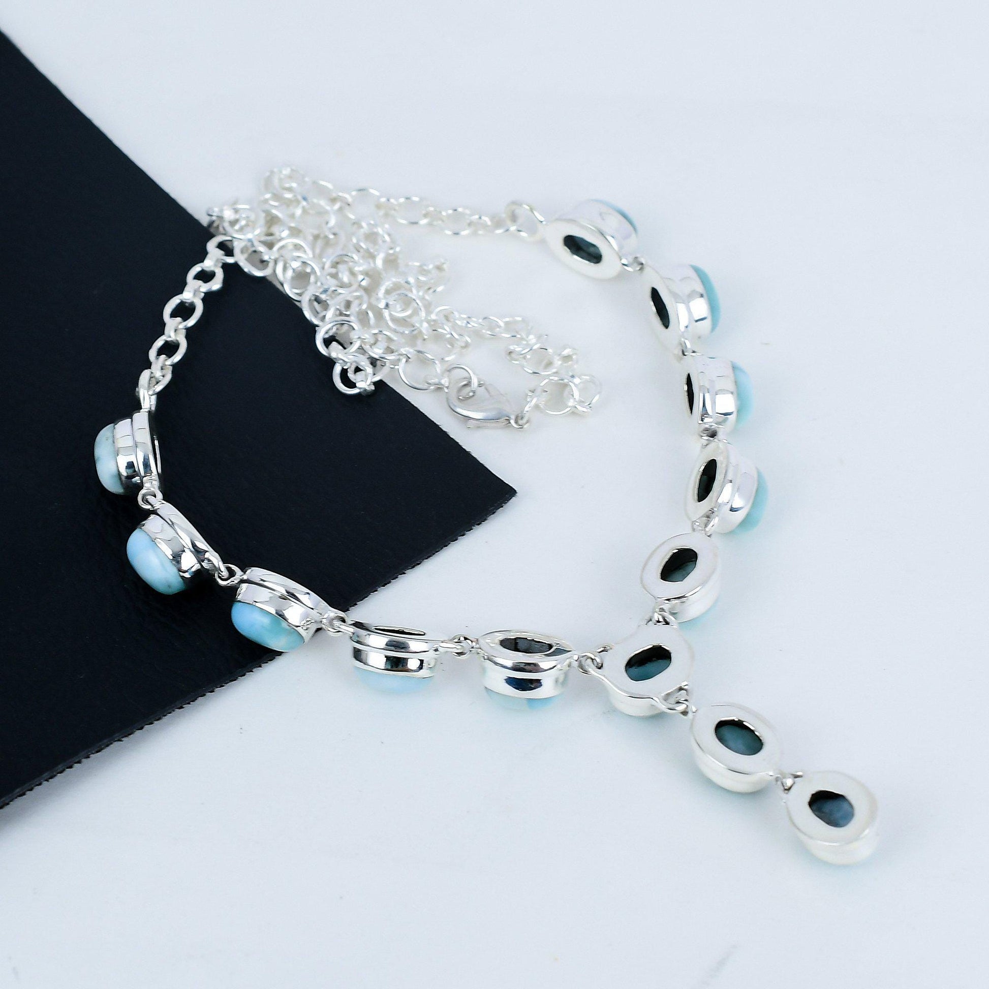 Elevate your style with this stunning Larimar necklace, featuring a series of oval gemstones set in exquisite sterling silver.