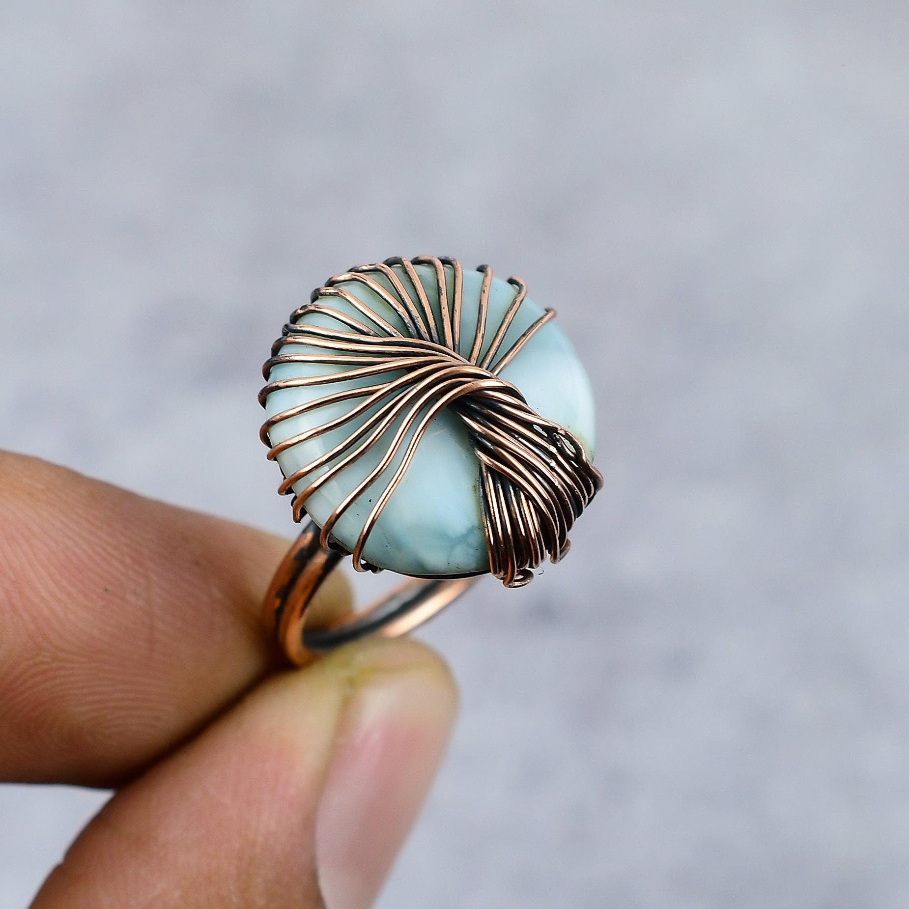 Discover the enchanting elegance of our Handcrafted Copper Wire Wrapped Stone Ring. Perfectly blending artistry and nature, this unique piece is a testament to timeless beauty and creativity.