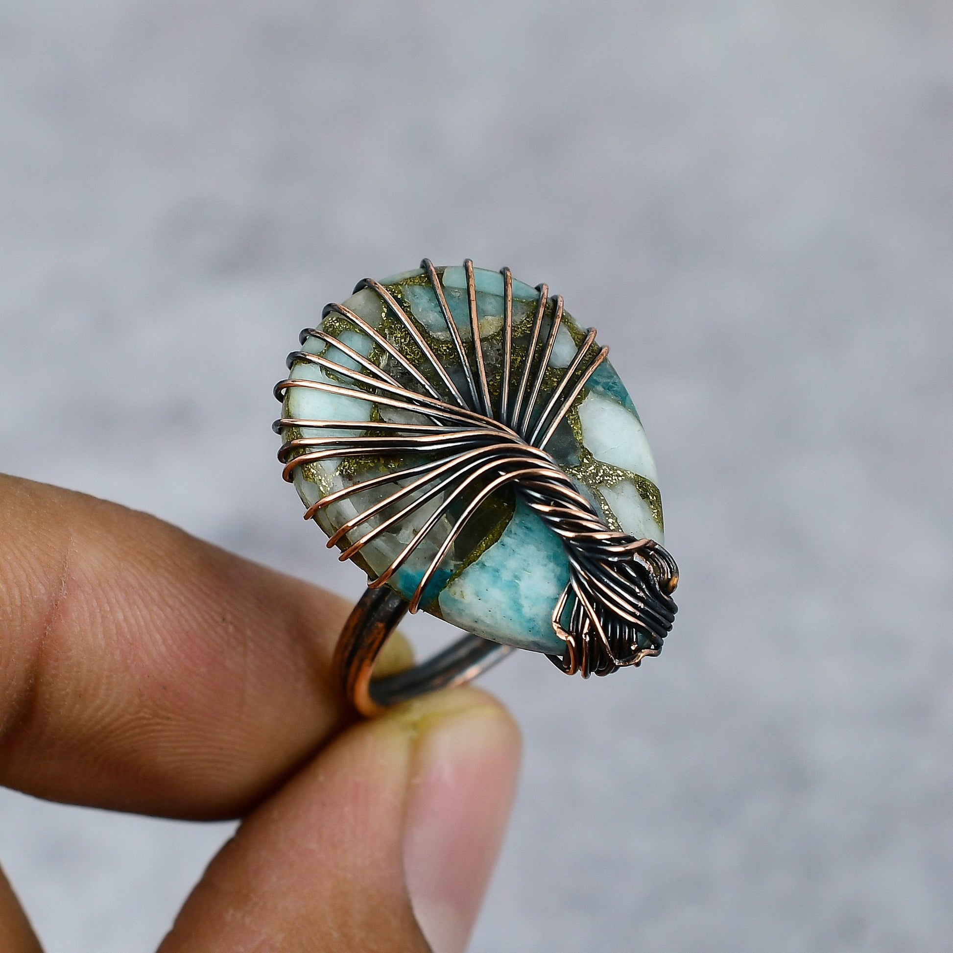 Materials: Made with high-quality copper wire and an exquisite stone centerpiece, blending modern artistry with natural elements.