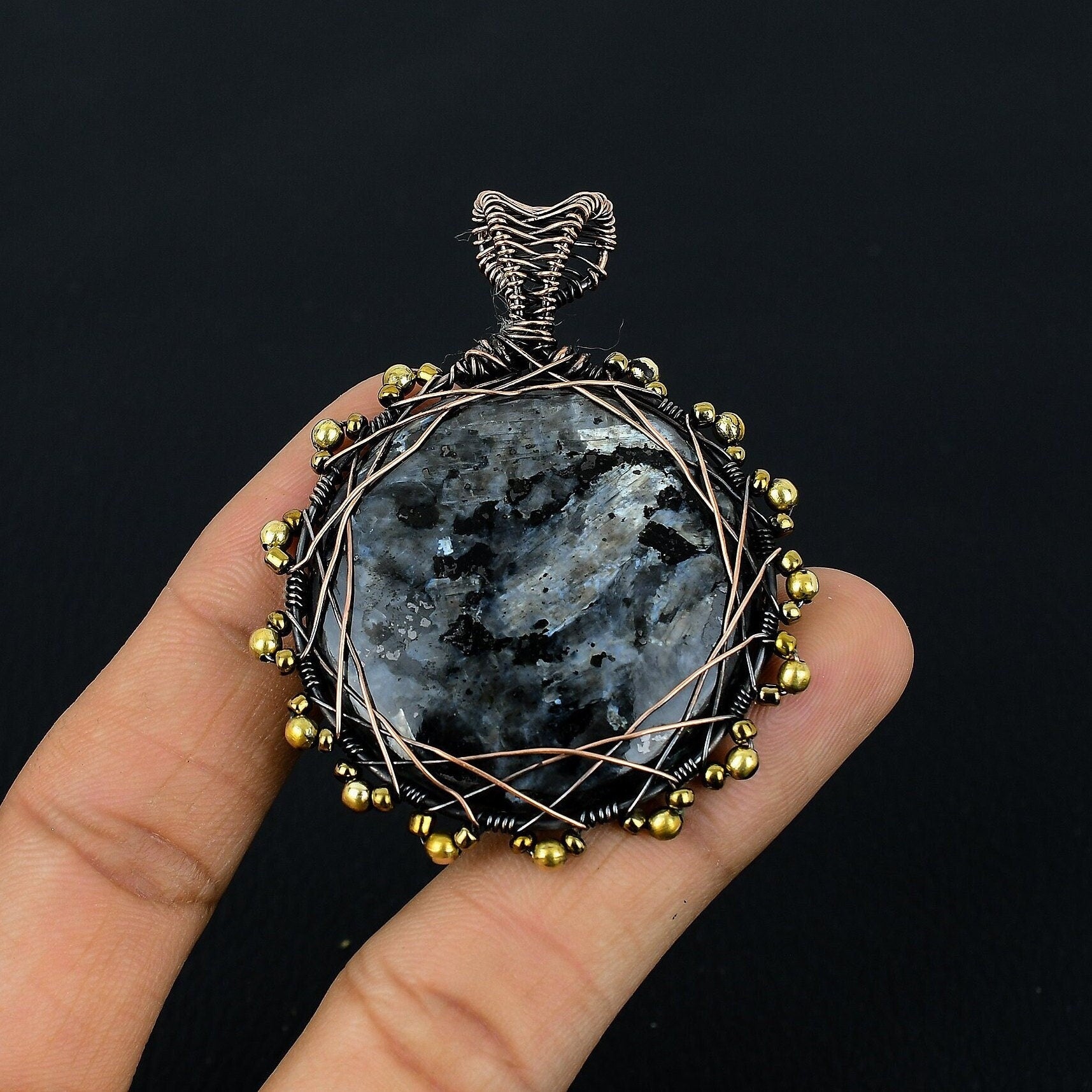 Discover the allure of our handcrafted wire-wrapped pendant, a masterpiece of artisanal jewelry design. Featuring an intricate combination of polished stones and delicate wire work, this pendant exudes elegance and individuality.