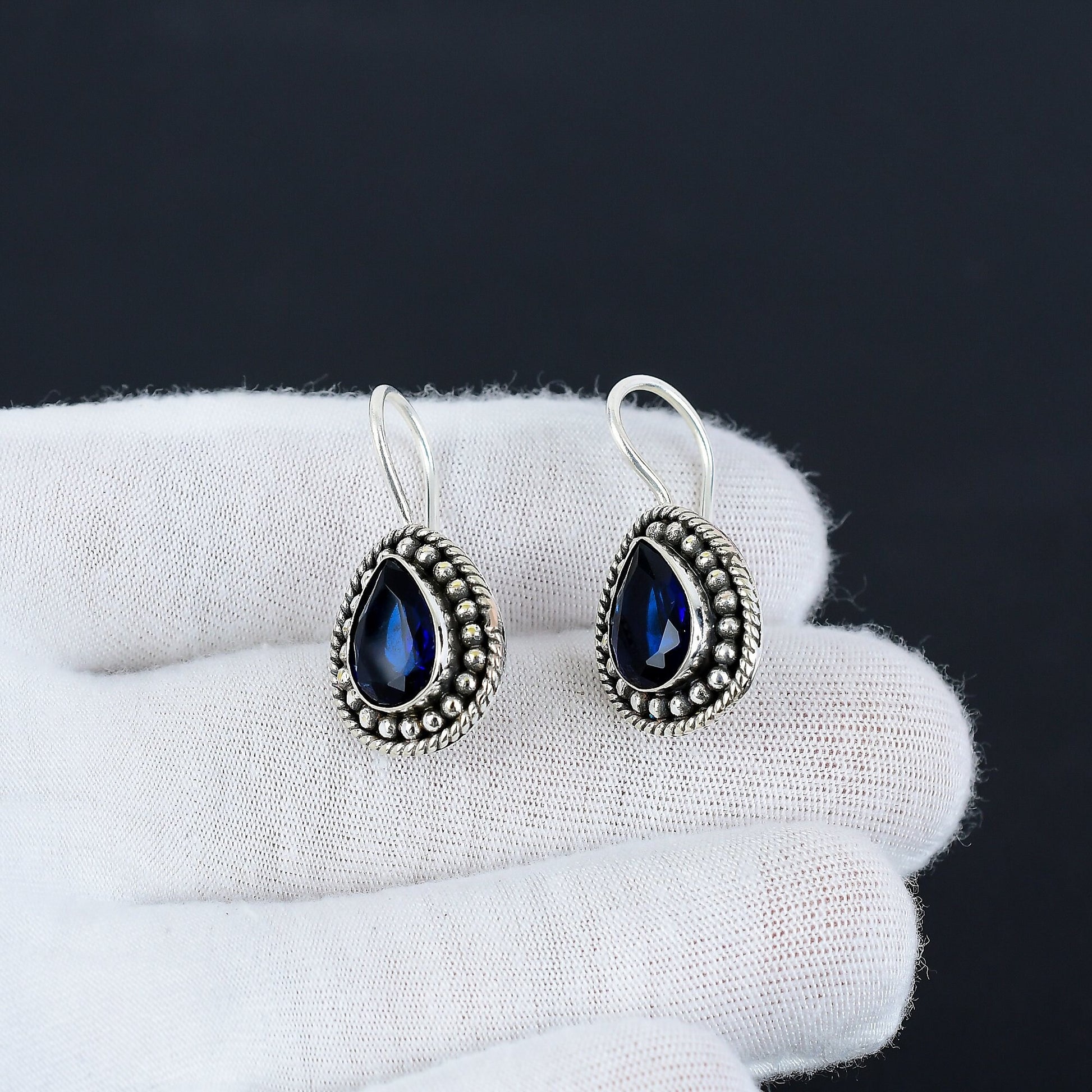 Introducing our exquisite Vintage Blue Teardrop Earrings, a timeless addition to your jewelry collection. Crafted with precision, these earrings feature a stunning blue teardrop gemstone, beautifully encased in an intricately detailed silver setting.
