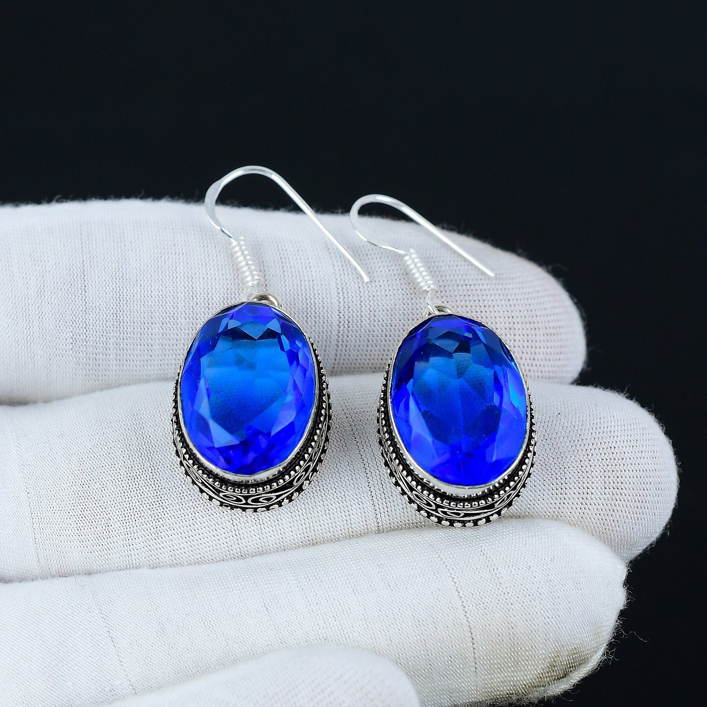 Step into elegance with these exquisite oval blue gemstone earrings, designed to add a touch of sophistication to any outfit.