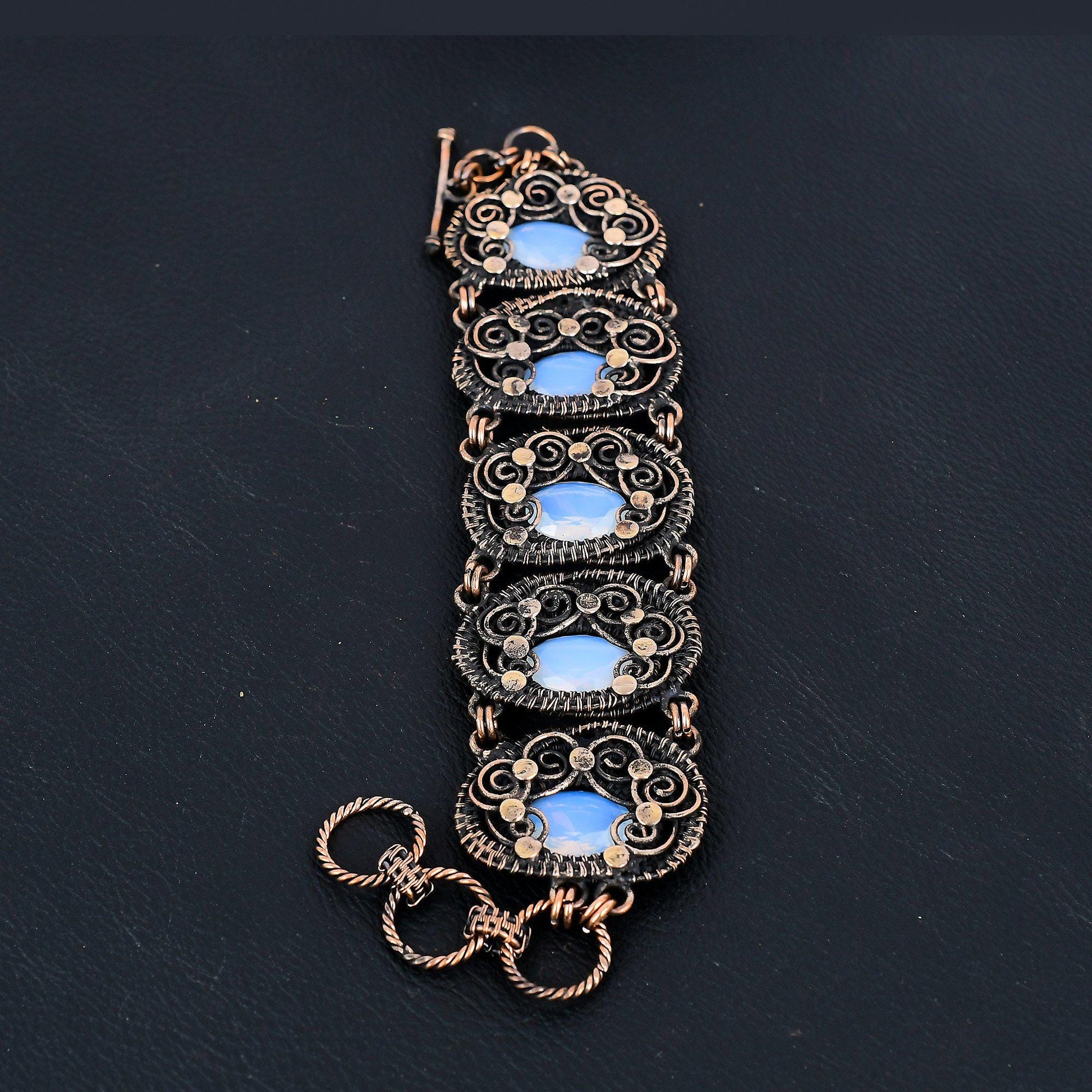 Elevate your style with this exquisite handmade bracelet, featuring intricate metalwork and luminous gemstones.