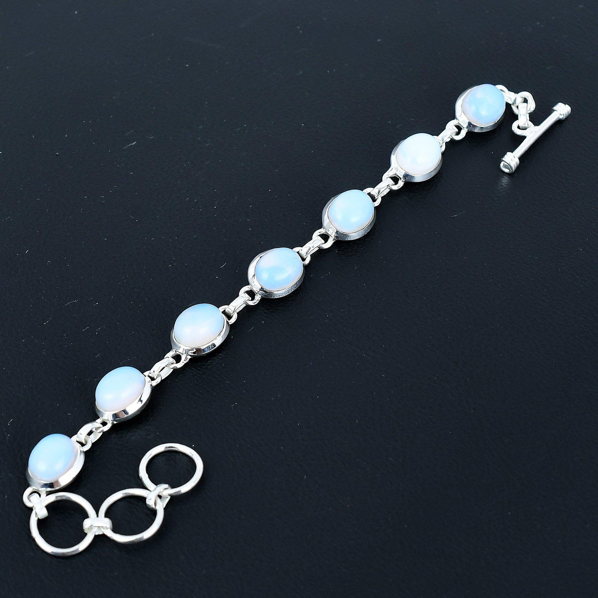 Elevate your style with this exquisite bracelet, featuring beautifully polished, soft blue moonstones set in elegant silver links.