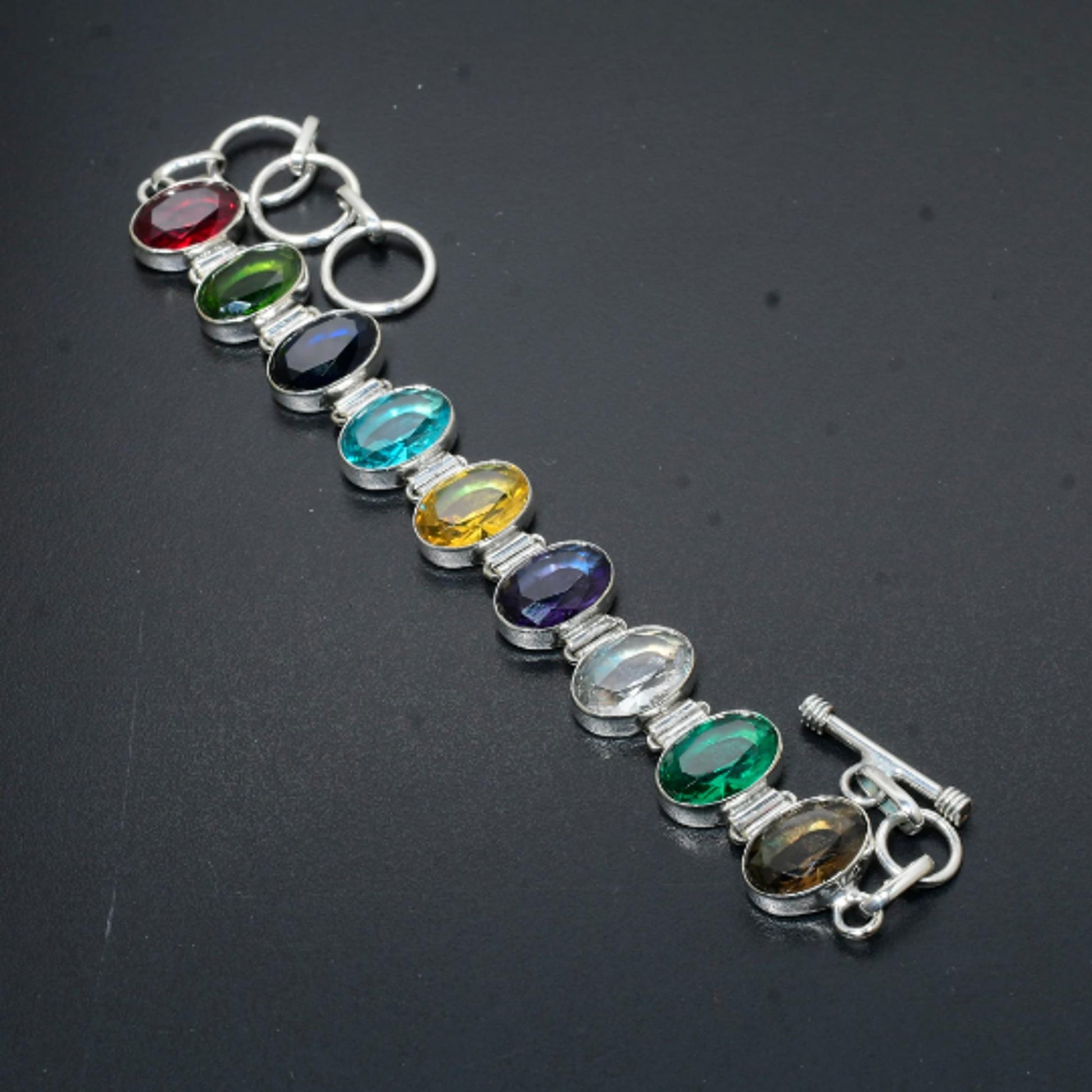 Enhance your style with this exquisite multi-gemstone bracelet, featuring a stunning array of vibrant colors.