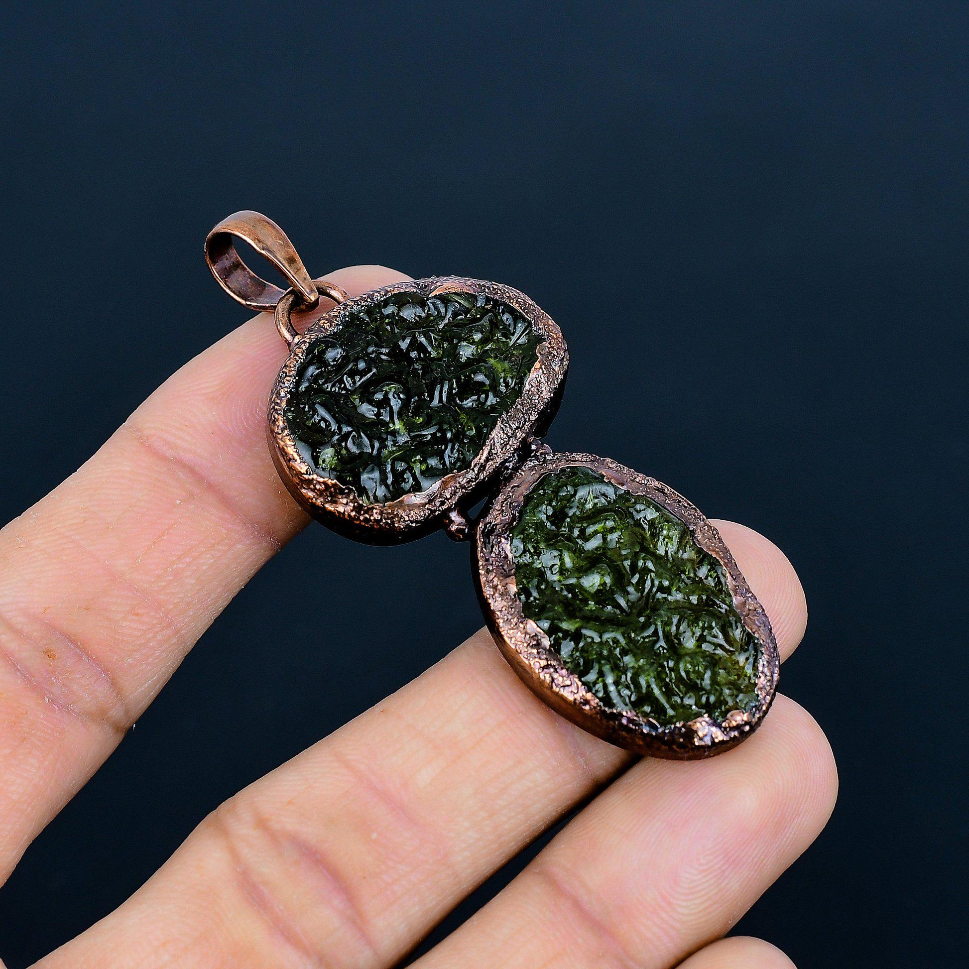 - Authentic Moldavite stone, renowned for its unique green hue and textured finish.