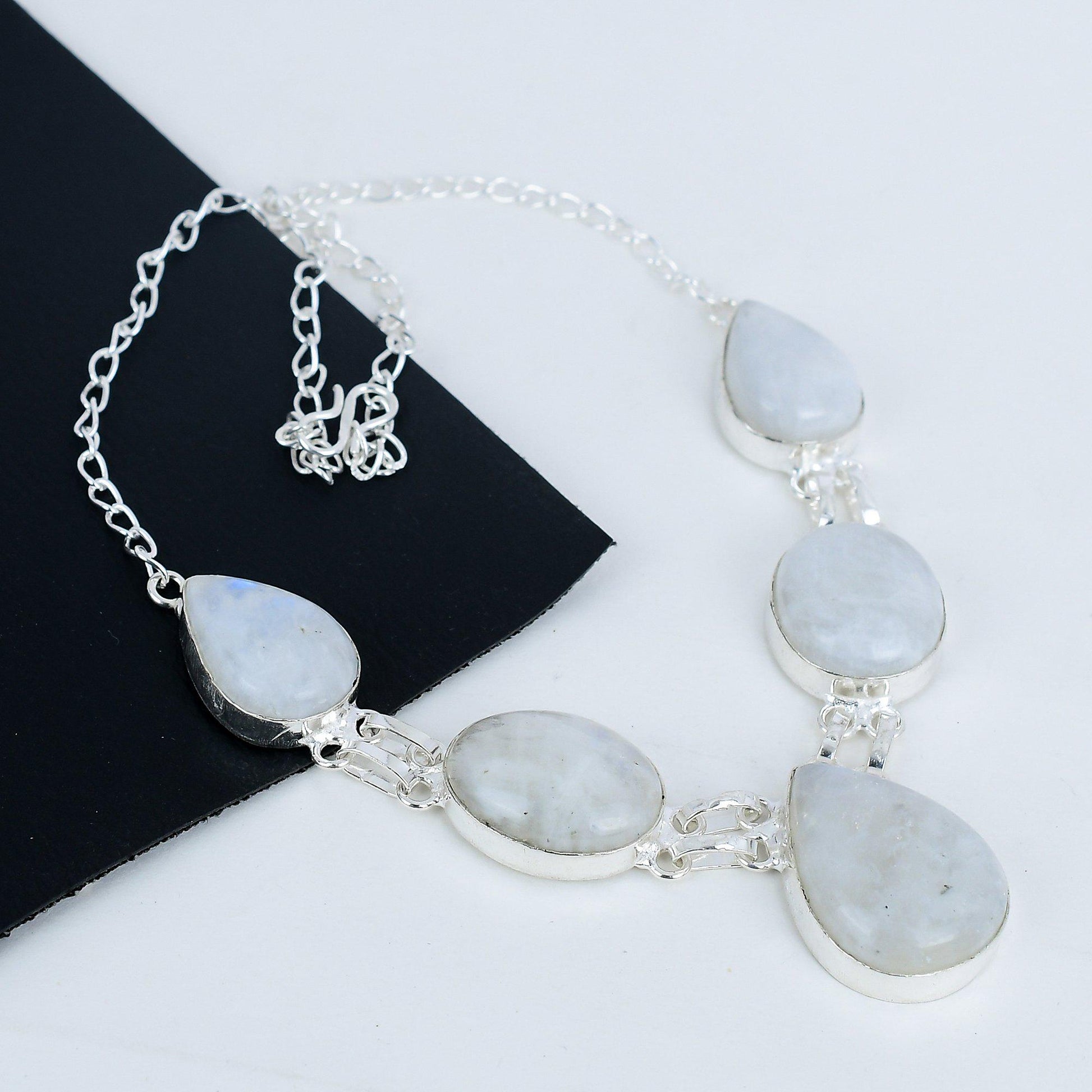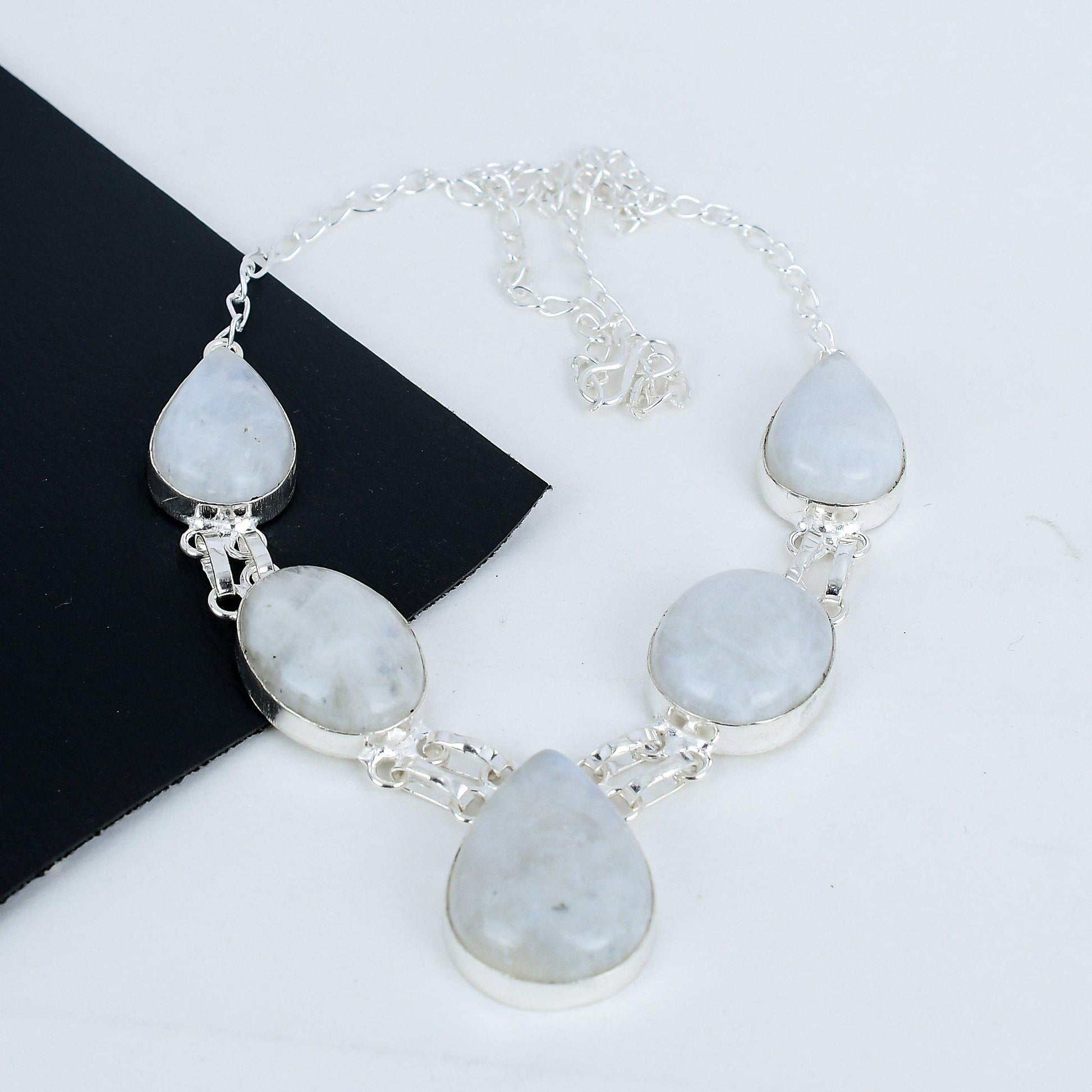 Featuring lustrous tear-drop and oval-shaped moonstones, this piece is expertly crafted to bring grace and charm to any ensemble.