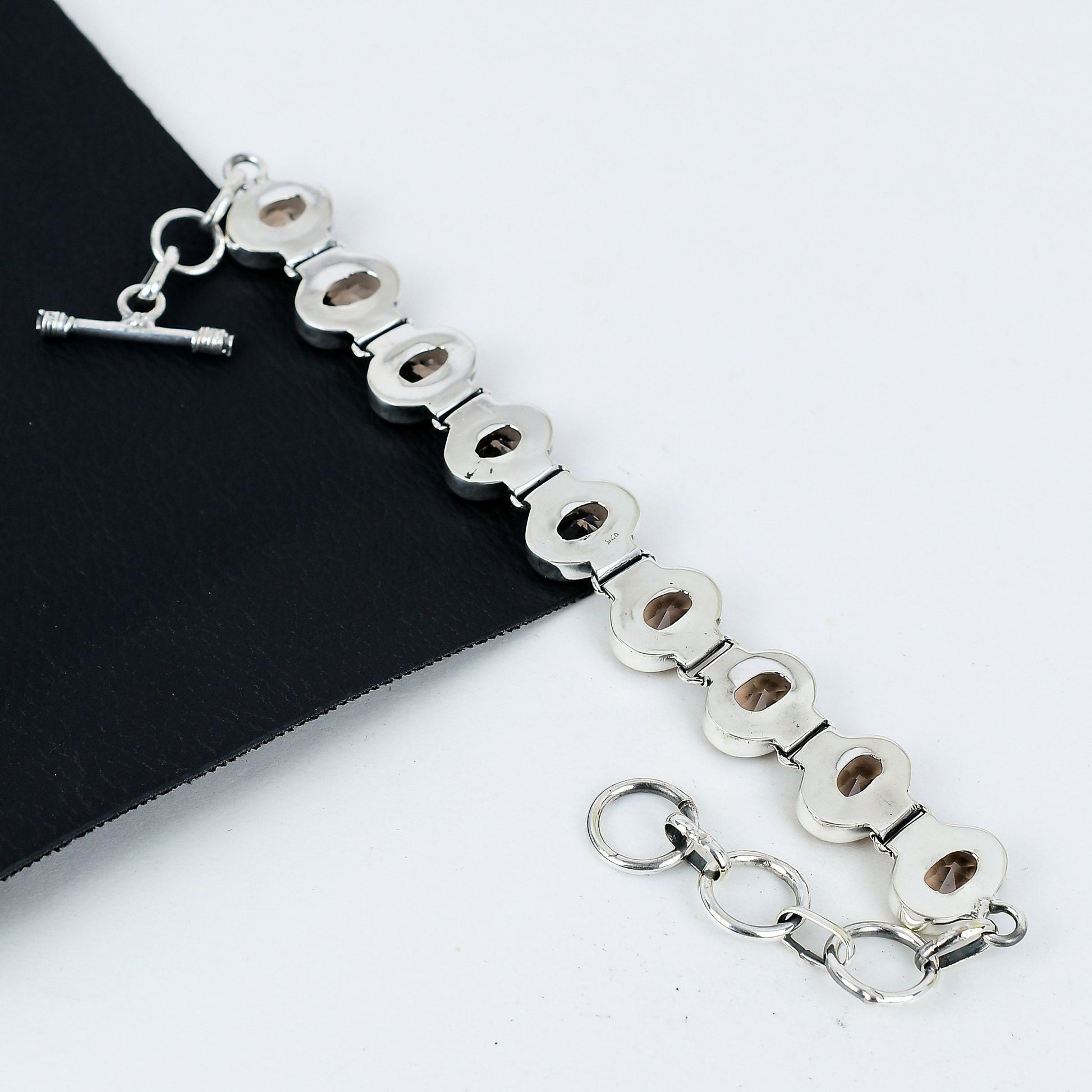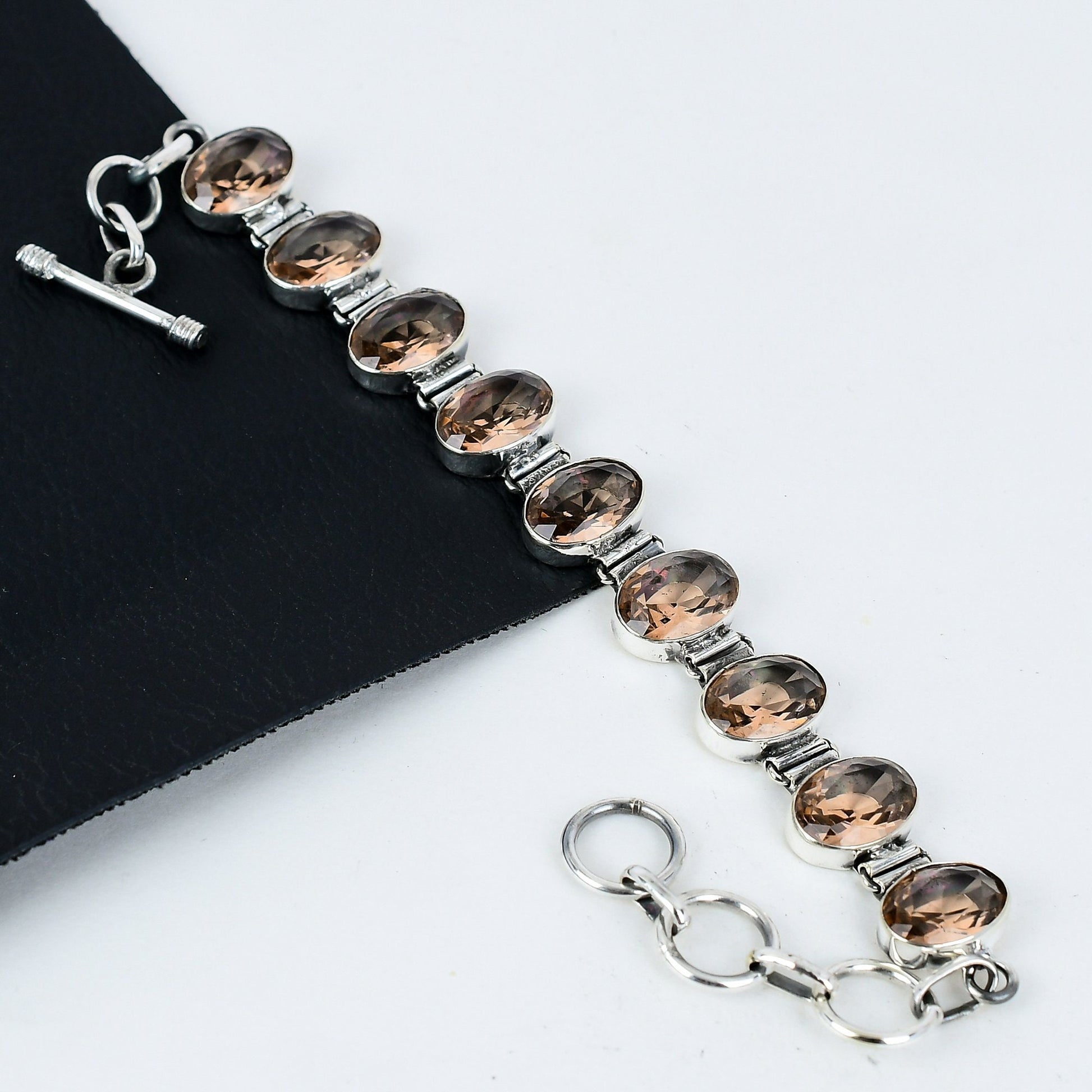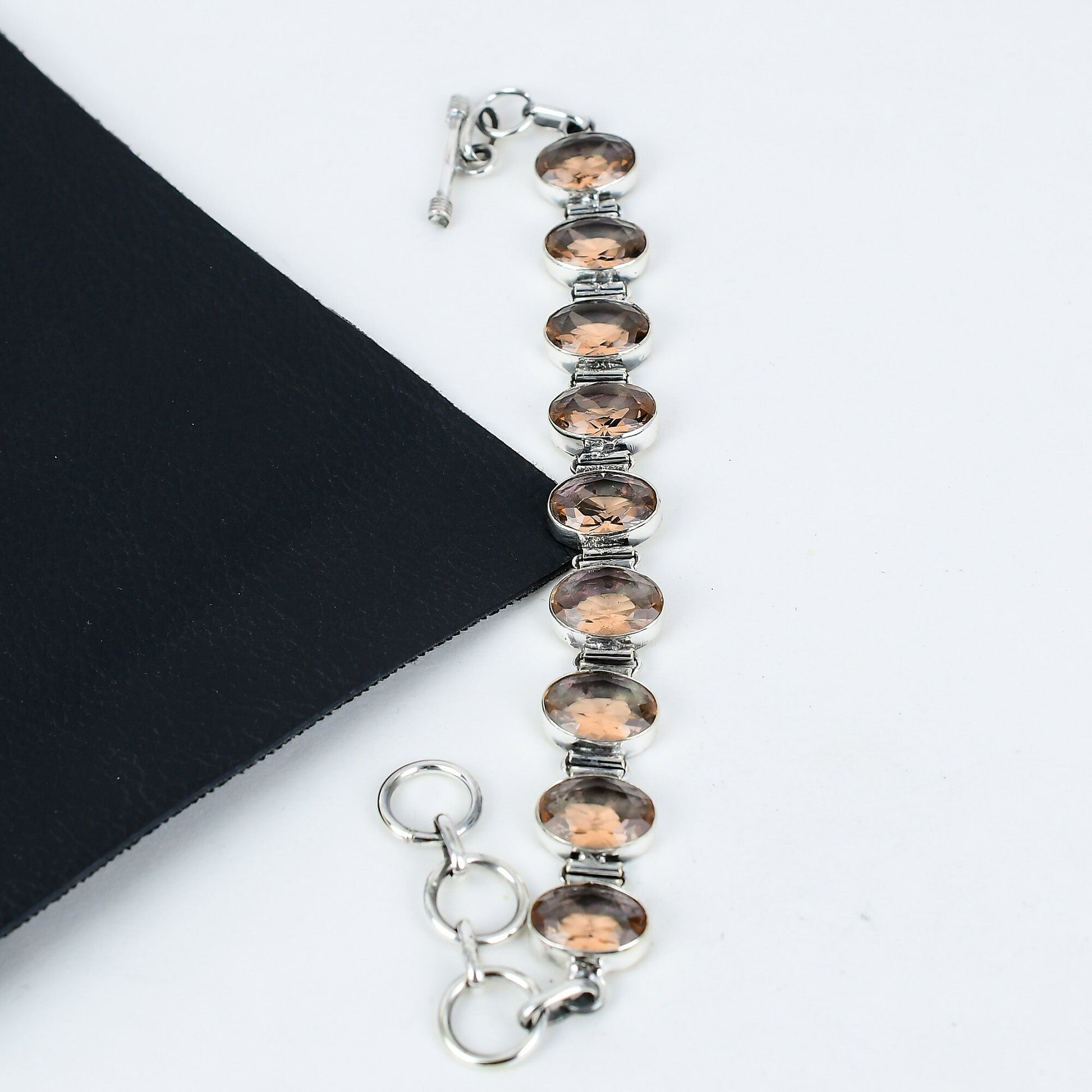 Enhance your elegance with this exquisite Silver Oval Rose Quartz Bracelet.