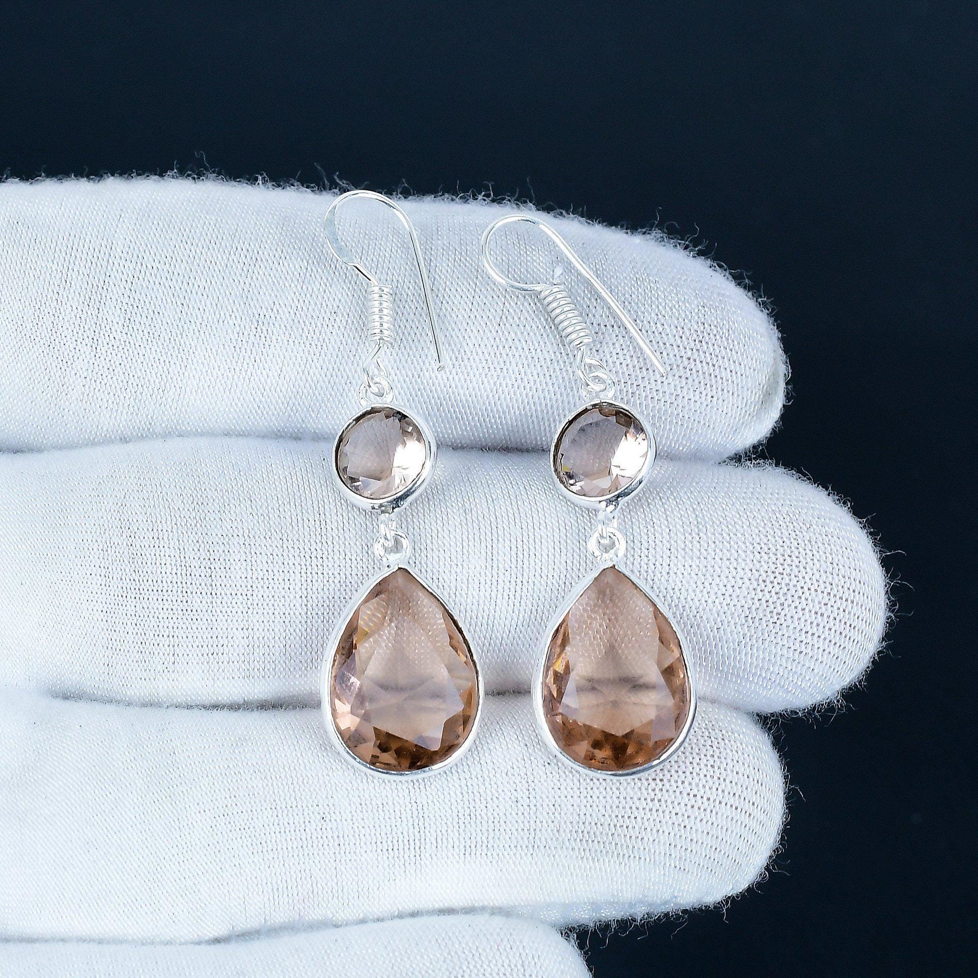 Each earring features a round cut and a stunning teardrop cut smoky quartz, creating a harmonious balance of shapes that sparkle with every movement.