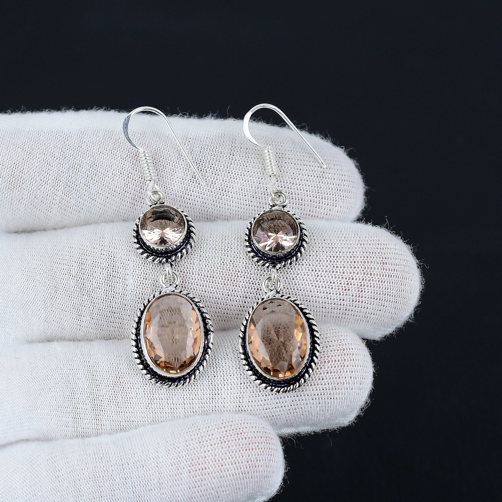 Featuring stunning oval and round gemstones set in intricate silver detailing, these earrings are a masterpiece of craftsmanship.