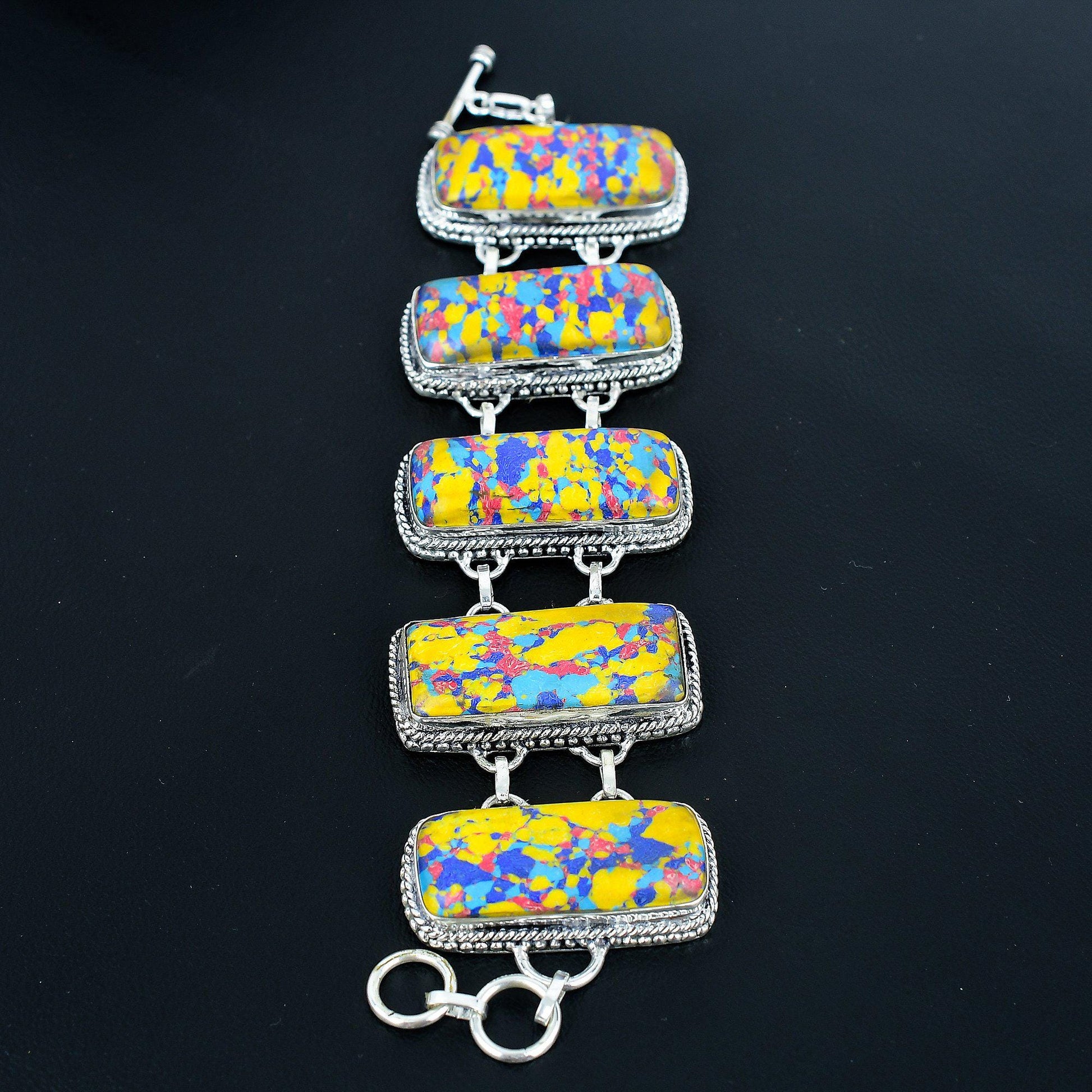 Design: Featuring unique, rectangular stones with a captivating blend of vivid hues, each piece is a standout element.