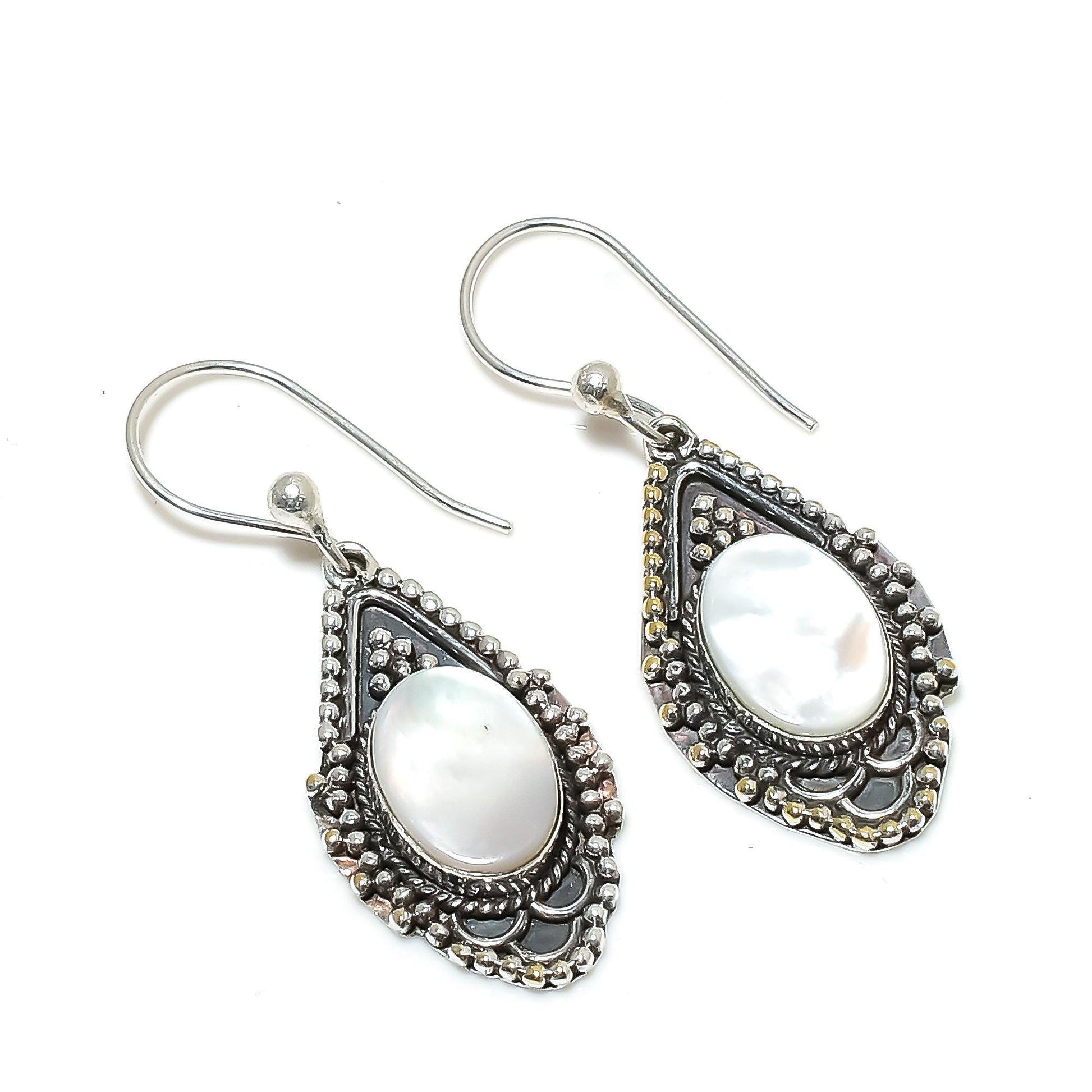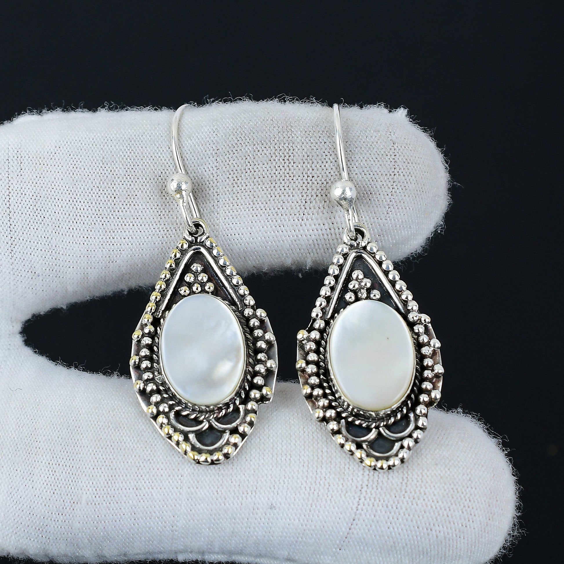 Featuring a mesmerizing mother-of-pearl centerpiece, these earrings weave a tale of sophistication and timeless beauty.