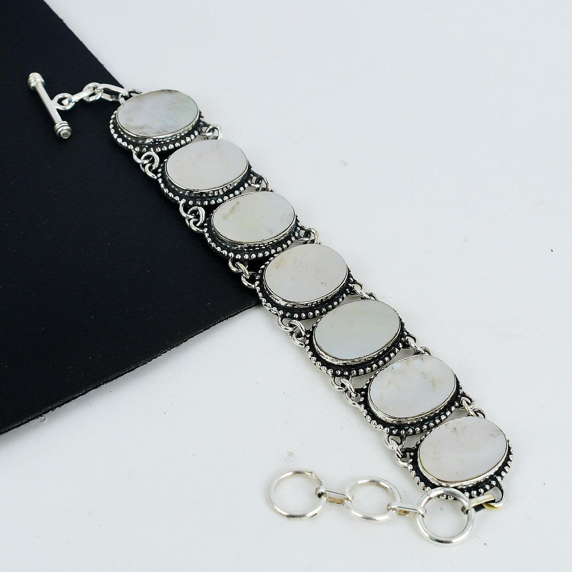 Design: This elegant piece features a series of oval-shaped, mother of pearl stones intricately set in detailed silver frames, creating a striking balance of elegance and sophistication.