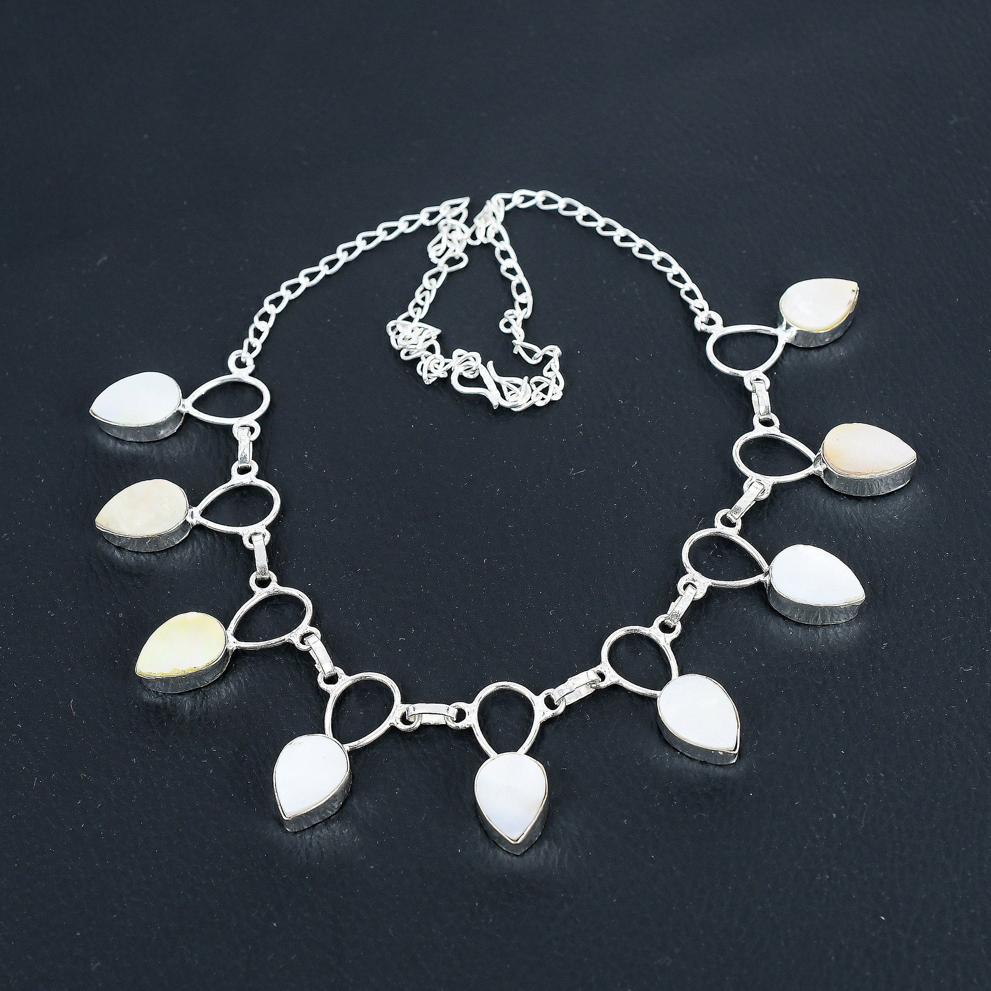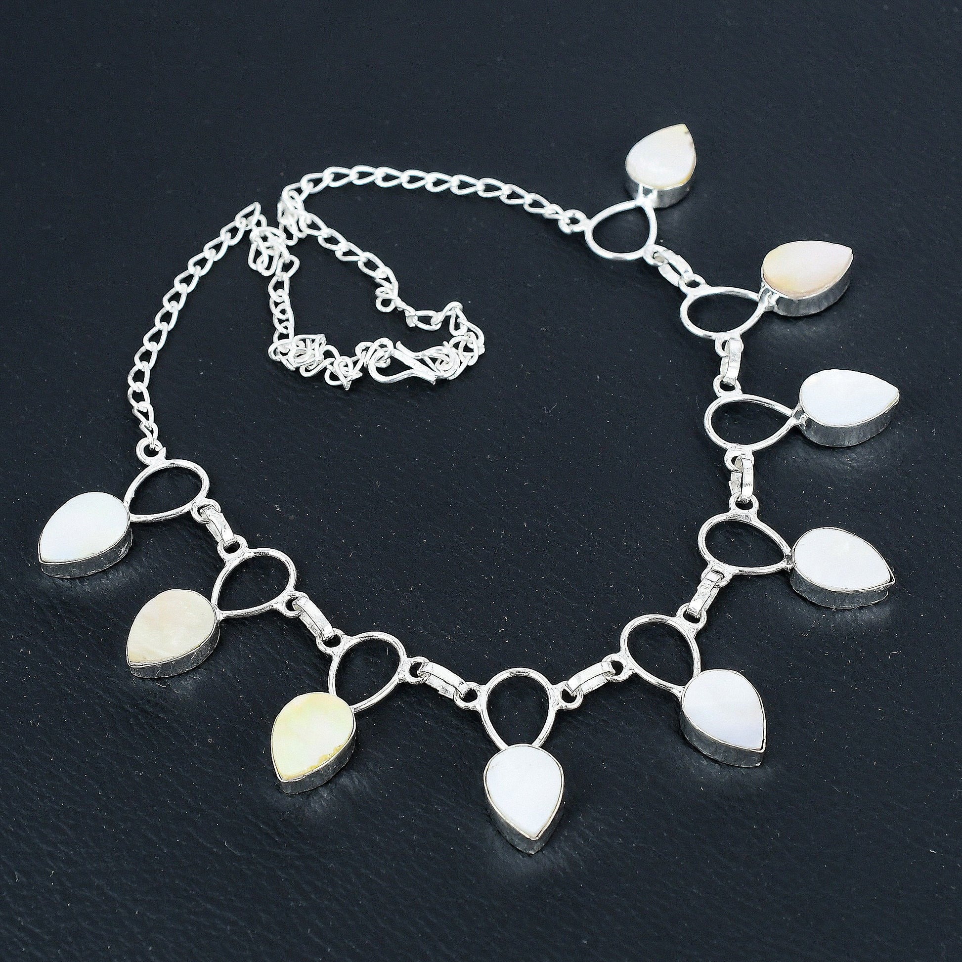 Adorned with delicate teardrop-shaped charms, each piece captures a timeless beauty that compliments any attire.