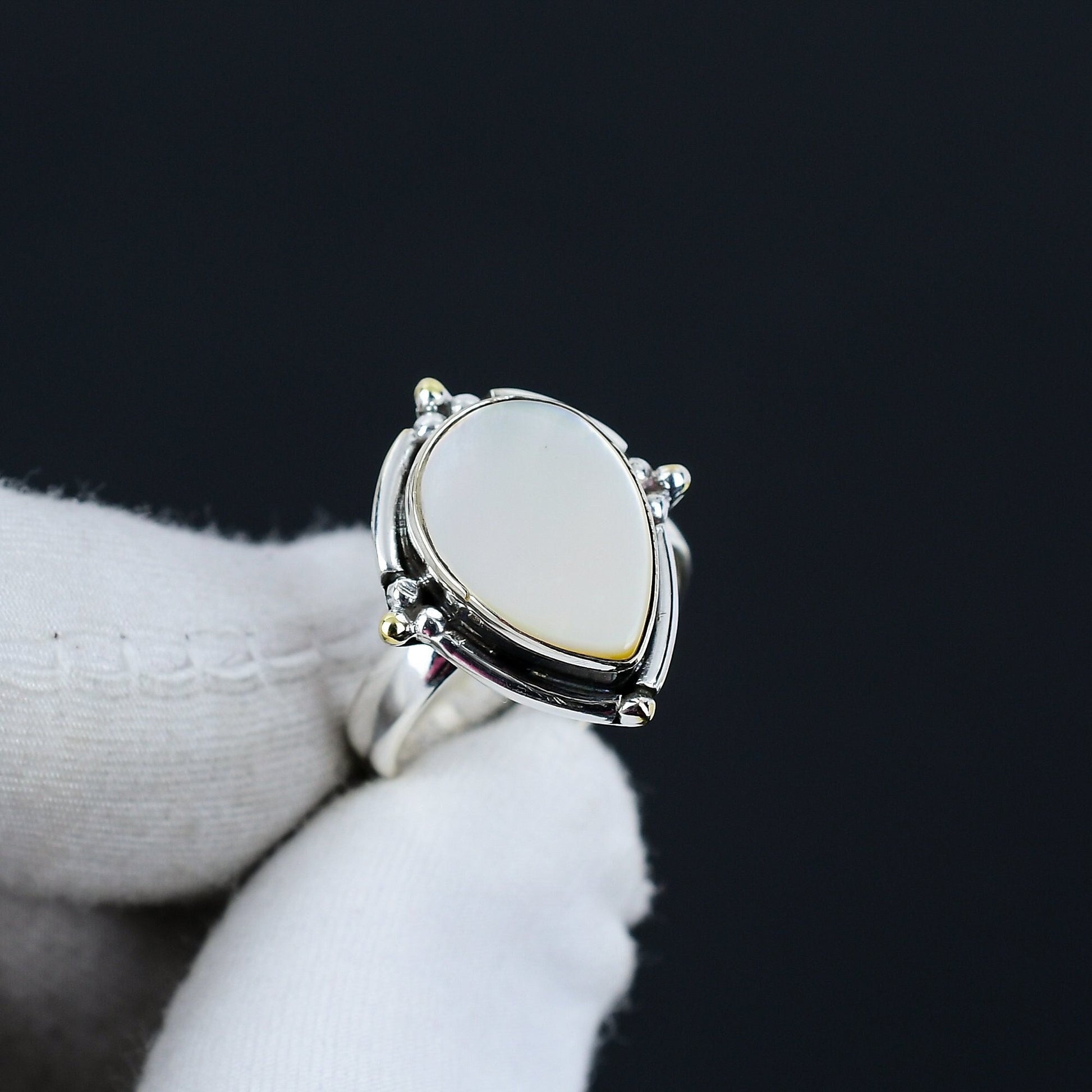 Elevate your elegance with this exquisite pear-shaped white gemstone ring.
