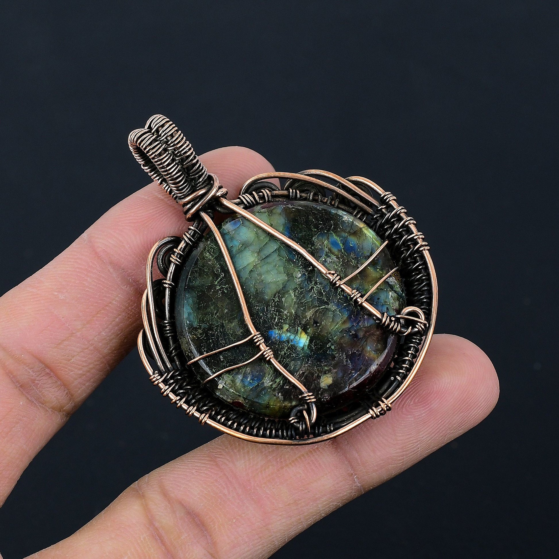 Embrace the enchanting beauty of nature with this handcrafted wire-wrapped pendant. Featuring a mesmerizing round gemstone, each piece is carefully adorned with intricate wirework that forms a unique tree of life design.