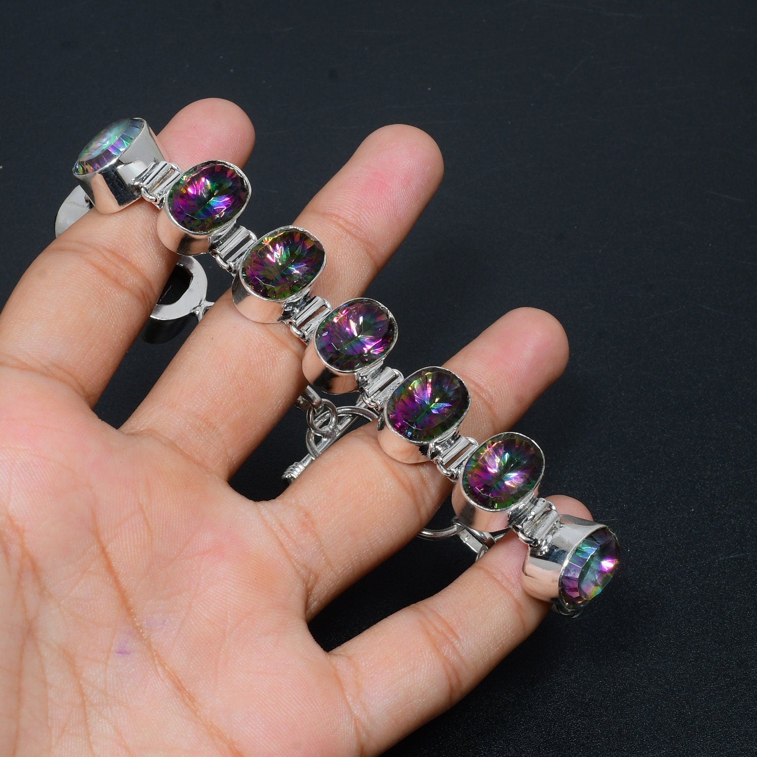 Elevate your accessory collection with this stunning rainbow topaz bracelet, a perfect blend of elegance and modern style.