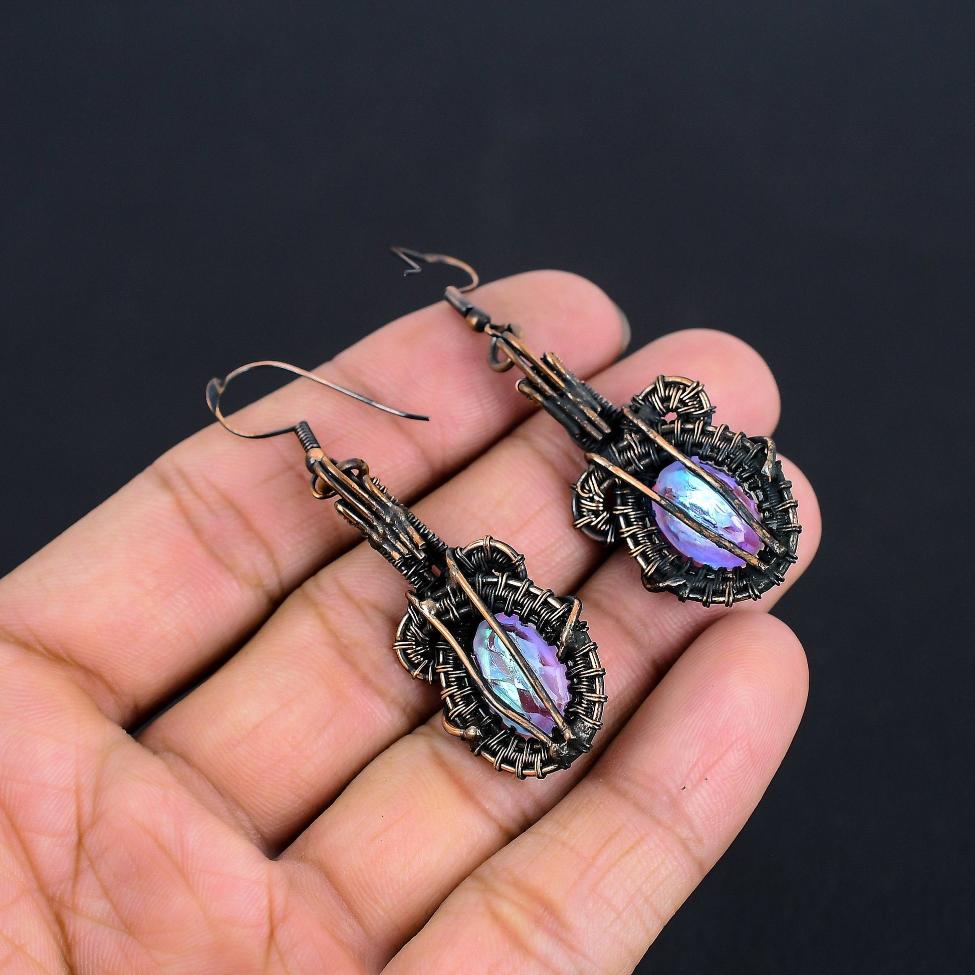 These stunning earrings feature a captivating iridescent gemstone at their center, radiating an array of colors with every movement.