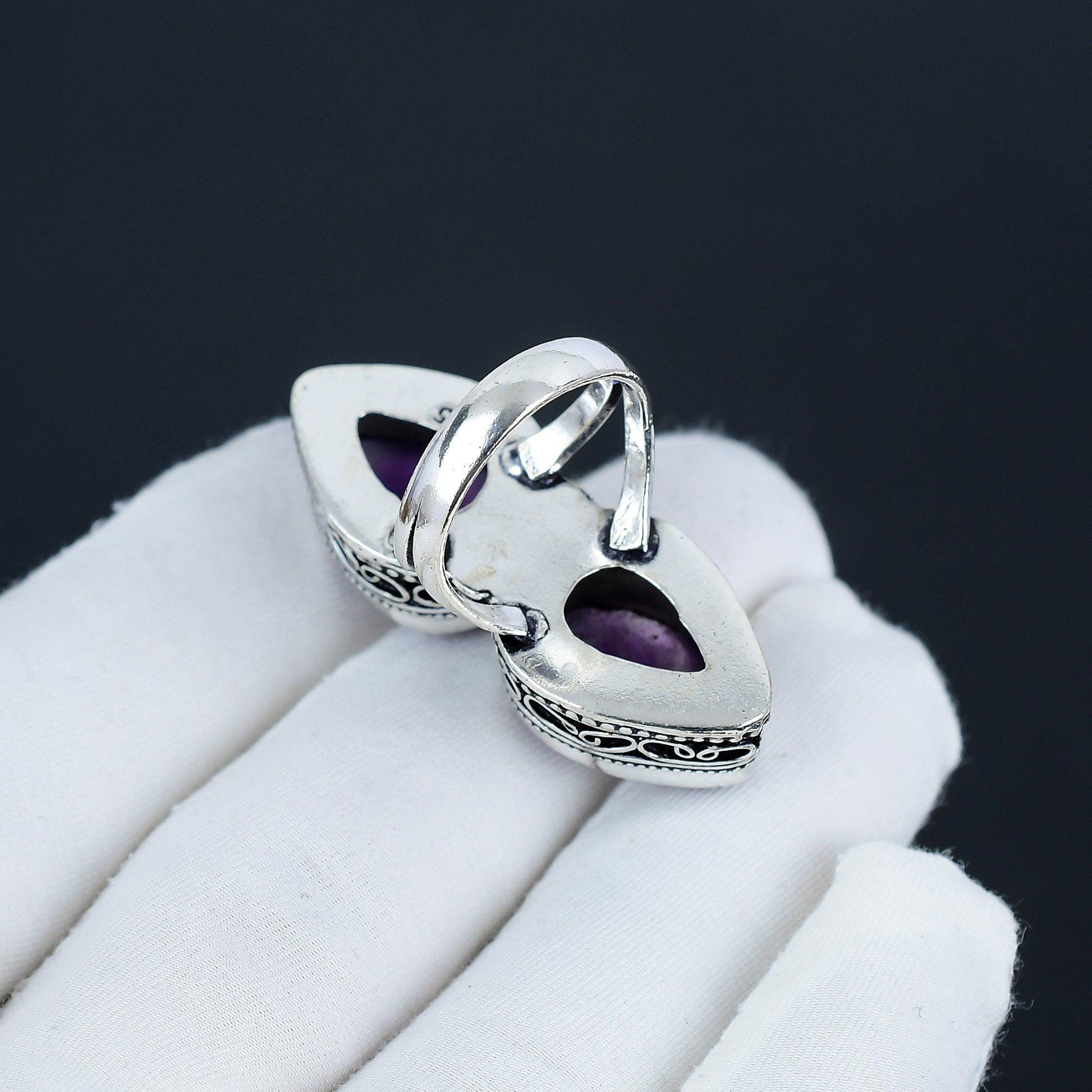 Experience elegance and sophistication with our exquisite handcrafted ring featuring stunning double teardrop amethyst stones.
